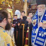Στο τέλος της ακολουθίας ο Πανιερώτατος χειροθέτησε σε Οικονόμους τους εκ των εφημερίων του ναού π. Ηλία και π. Λάμπρο, απευθύνοντας τους πατρικές νουθεσίες.