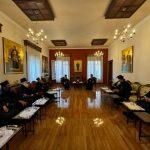 Νωρίς το απόγευμα της Παρασκευής, ο Πανιερώτατος, ο Θεοφιλέστατος Επίσκοπος Αμαθούντος κ. Νικόλαος και ο Καθηγούμενος της Ι.Μ.Μ του Βατοπαιδίου Αρχιμ. Εφραίμ συνοδευόμενοι από τον Σεβασμιώτατο Μητροπολίτη Νέας Κρήνης και Καλαμαριάς κ. Ιουστίνο και Σιδηροκάστρου κ. Μακάριο, τους Πρωτοσυγκέλους των Ιερών Μητροπόλεων Λεμεσού και Κωνσταντίας και τον Αρχιμ. Λάζαρο όπου έτυχαν θερμής υποδοχής από τον οικείο Ποιμενάρχη κ. Φιλόθεο.