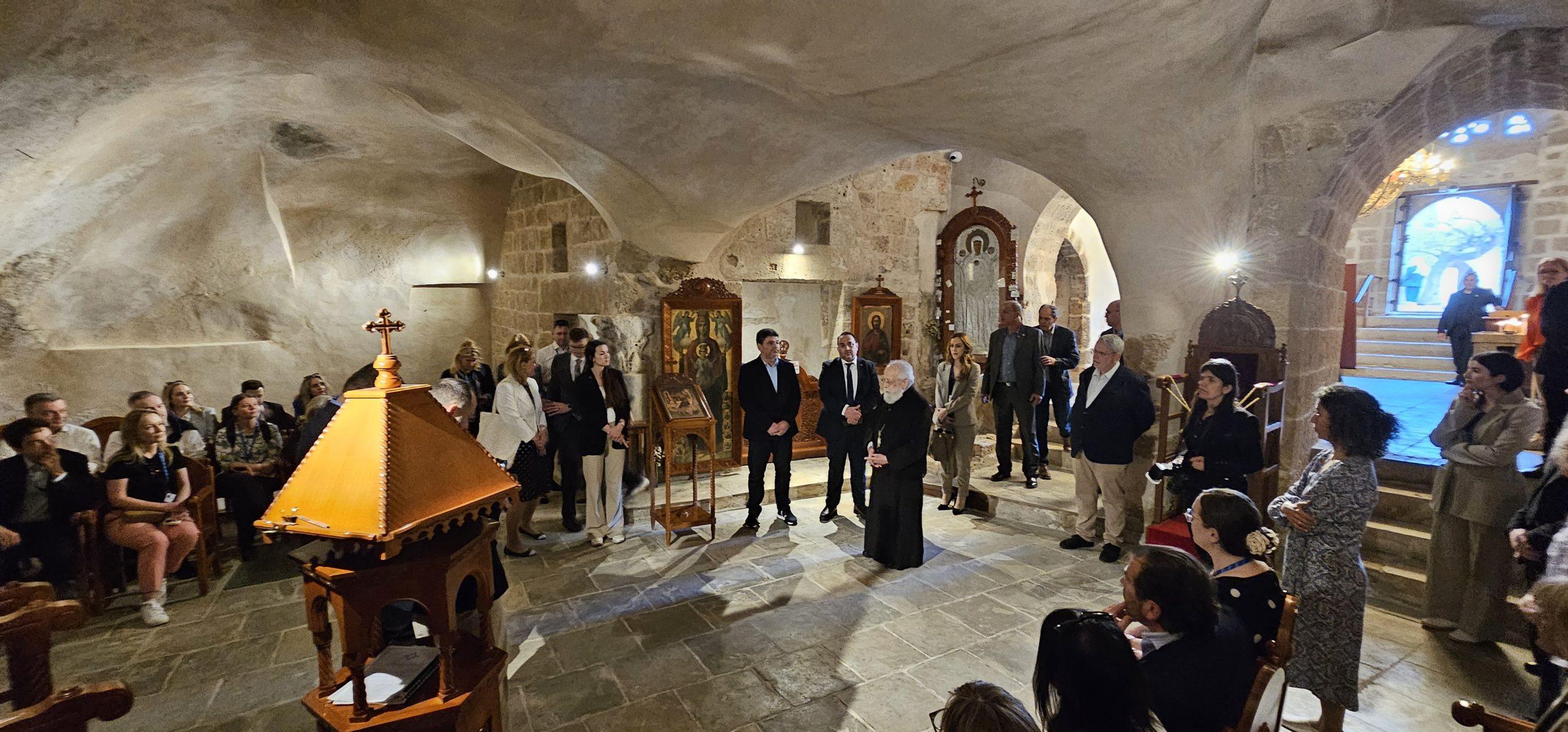 Υπουργούς Τουρισμού των 27 κράτων μελών της Ε.Ε πού έλαβαν μέρος σε άτυπη σύνοδο που πραγματοποιήθηκε σήμερα, Παρασκευή, 17 Απριλίου 2026, στο πλαίσιο της Κυπριακής Προεδρίας του Συμβουλίου της Ευρωπαϊκής Ένωσης, επισκέφθηκαν το απόγευμα την αρχαία Μονή της Αγίας Νάπας.