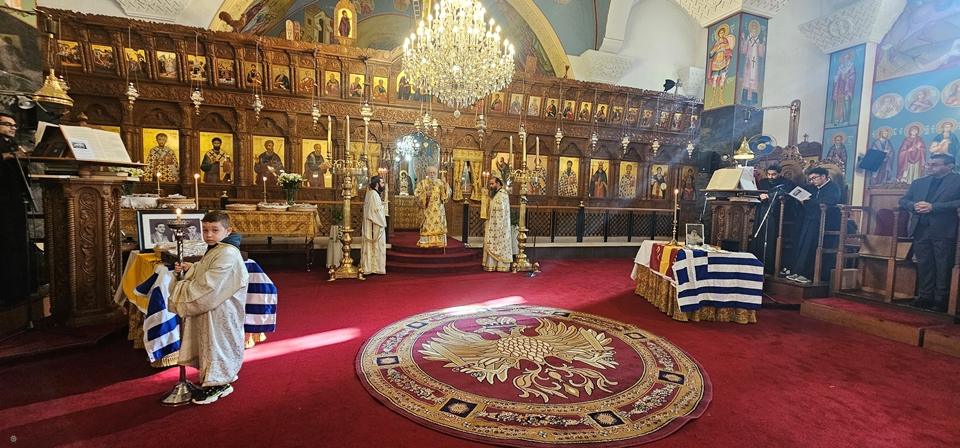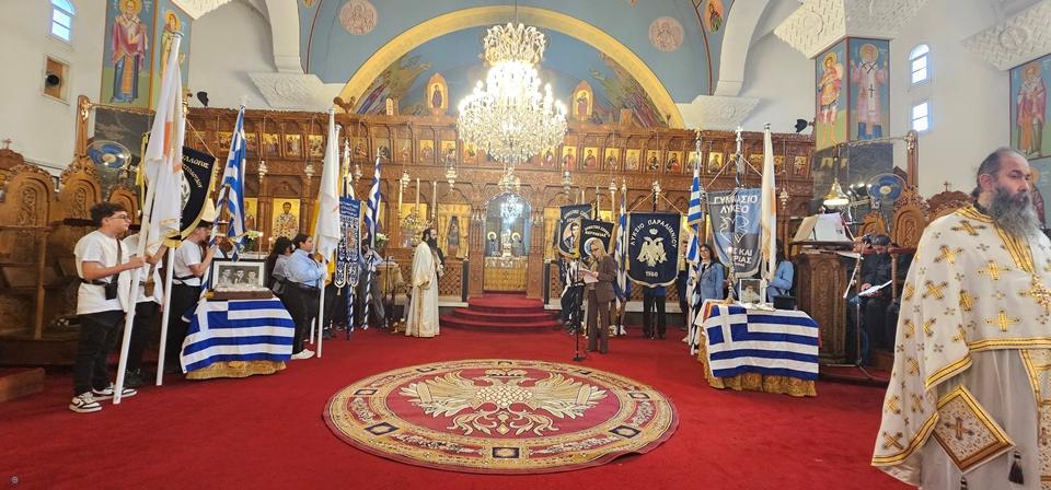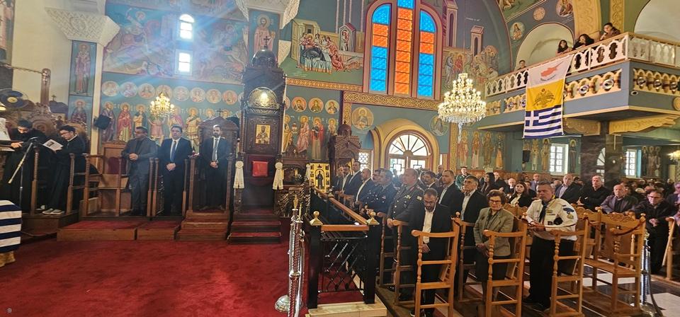 Της Θείας Λειτουργίας και των μνημοσύνων προέστη ο Πανιερώτατος Μητροπολίτης Κωνσταντίας και Αμμοχώστου Βασίλειος, πλαισιούμενος από τους πανοσιολ. Αρχιμ. Αυγουστίνο Κκαρά, πρωτοσύγκελλο της Ιεράς Μητροπόλεως, Επιφάνιο Παπαντωνίου και το ιερατείο του ναού.