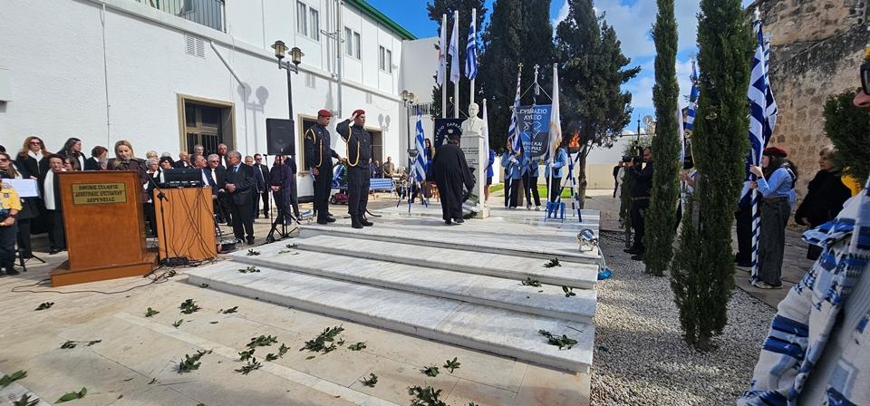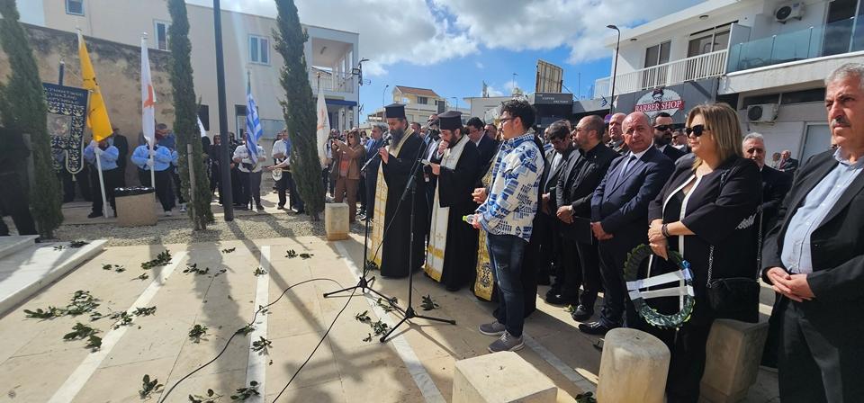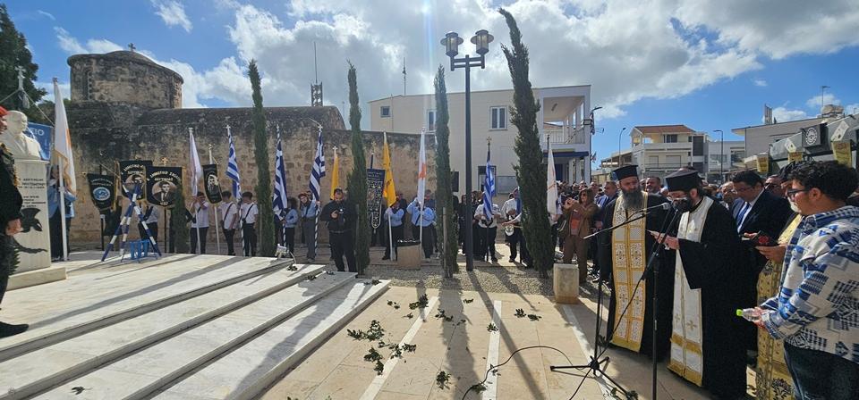 Τον επιμνημόσυνο λόγο εκφώνησε ο Αντιστράτηγος εν Αποστρατία Λούκας Χατζημιχαήλ, ο οποίος με γλαφυρό τρόπο εξήρε την αυτοθυσία των ηρώων αναφερόμενος στις ιστορικές συνθήκες και υπογραμμίζοντας την ανάγκη για συνέχιση του αγώνα στις σύγχρονες προκλήσεις που αντιμετωπίζει η Κύπρος.