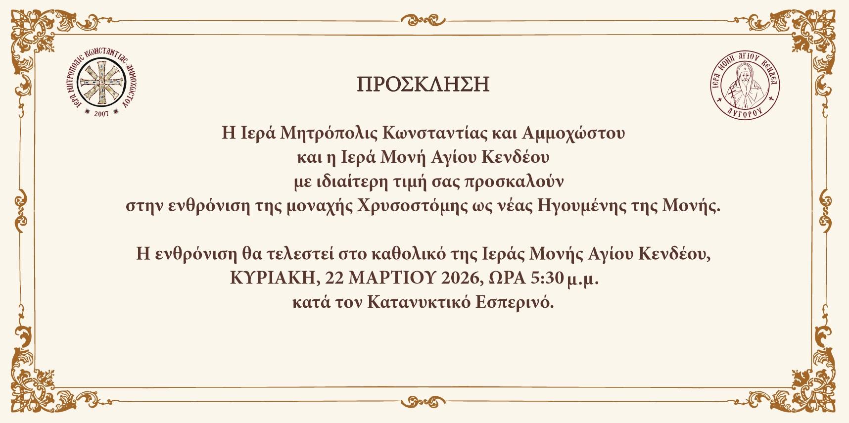 Ενθρόνιση Ηγουμένης Ιεράς Μονής Αγίου Κενδέα