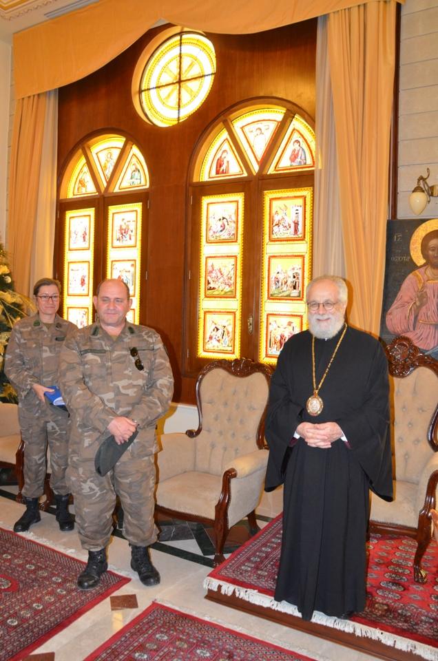 Επίσκεψη στην Ιερά Μητρόπολη Κωνσταντίας και Αμμοχώστου πραγματοποίησαν την Πέμπτη 21 Δεκεμβρίου 2017, εθνοφρουροί της VII Ταξιαρχίας Πεζικού συνοδευόμενοι από το νέο Ταξίαρχο κ. Άγγελο Σαβόπουλλο. Οι εθνοφρουροί έψαλλαν τα κάλαντα στον Πανιερώτατο Μητροπολίτη μας κ. Βασίλειο και αντάλλαξαν ευχές και συμβολικά δώρα.