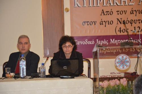 Συνεχίζονται οι εργασίες του Β΄ Διεθνούς Συνεδρίου Κυπριακής Αγιολογίας. Πραγματοποιήθηκαν σήμερα, Παρασκευή 14 Φεβρουαρίου, η Δ΄, Ε΄, Στ΄ και Ζ΄ Συνεδρία. Η πρώτη εισήγηση της Δ΄ Συνεδρίας είχε ως θέμα: «Ο Βίος του αγίου Σπυρίδωνος Τριμυθούντος από τον επίσκοπο Πάφου Θεόδωρο, 655 μ.Χ.». Εισηγητής ήταν ο Καθηγητής Κώστας Ν. Κωνσταντινίδης, ο οποίος είναι Καθηγητής στη Φιλοσοφική Σχολή στο Πανεπιστήμιο Ιωαννίνων. Ακολούθησε η δεύτερη εισήγηση από τον Ομότιμο Καθηγητή του Πανεπιστήμιο Αθηνών Παναγιώτη Γ. Νικολόπουλο, με θέμα: «Ο Βίος του αγίου Ιωάννου Χρυσοστόμου από τον επίσκοπο Τριμυθούντος Θεόδωρο». Στη συνέχεια, η τρίτη εισήγηση είχε ως θέμα: «Η παρουσία των Κυπρίων ιεραρχών στην Κωνσταντινούπολη τον 7οαιώνα: εκκλησιαστικό και συγγραφικό έργο». Εισηγήτρια ήταν η Δρ Μαρία Λεοντσίνη, Ερευνήτρια στο Τμήμα Βυζαντινών Ερευνών του Ινστιτούτου Ιστορικών Ερευνών του Εθνικού Ιδρύματος Ερευνών Ελλάδος. Τέλος, η τέταρτη εισήγηση είχε ως θέμα: «Ο αρχιεπίσκοπος Κωνσταντίας Αρκάδιος συντάκτης του Εγκωμίου του Αγίου Γεωργίου», με εισηγήτρια τη Δρα Χριστίνα Κάκκουρα, Βυζαντινολόγο. Μετά την ολοκλήρωση και των τεσσάρων εισηγήσεων, οι εισηγητές δέχθηκαν ερωτήσεις από τους συνέδρους και ακολούθησε εποικοδομητική συζήτηση.