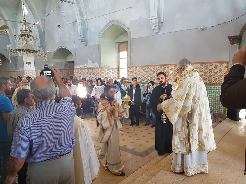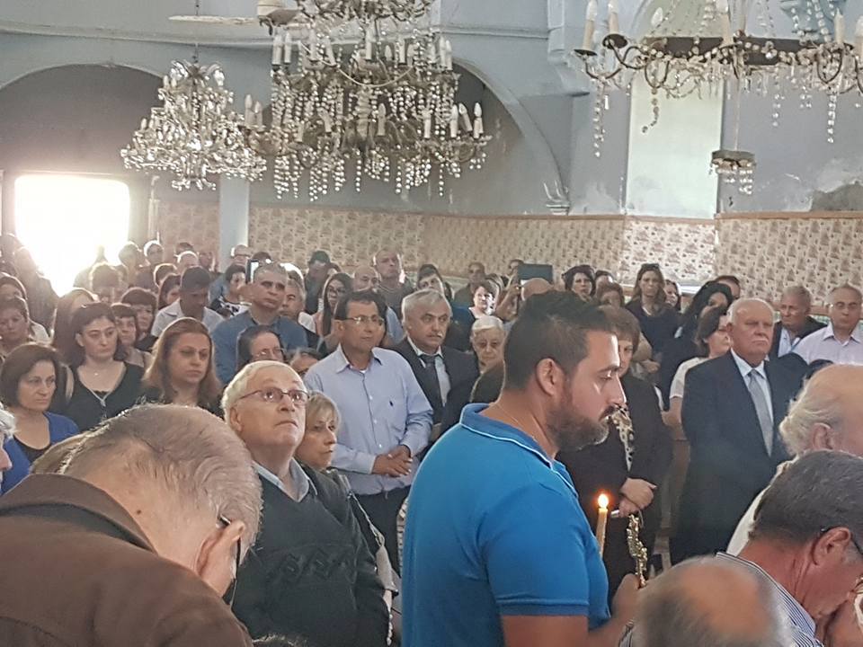 Με έκδηλη συγκίνηση και δάκρυα στα μάτια, δεκάδες Πραστίτες, μετέβησαν στην κατεχόμενη εκκλησία του Αγίου Γεωργίου της κοινότητας τους, όπου τελέστηκε Θεία Λειτουργία. Της ευχαριστιακής σύναξης, προέστη ο Πανιερώτατος Μητροπολίτης Κωνσταντίας-Αμμοχώστου κ. Βασίλειος, συμπαραστατούμενος από τον πρωτοσύγκελλο Αρχιμ. Αυγουστίνο Κκαρά, τους εκ Πραστιού καταγώμενους Ιερομόναχο Ειρηναίο, ο οποίος διακονεί στην Ιερά Μητρόπολη Μεσογαίας και Λαυρεωτικής, τον Πρωτ. Νικόλαο Παναγή και τον Διάκονο Επιφάνιο Παπαντωνίου.
