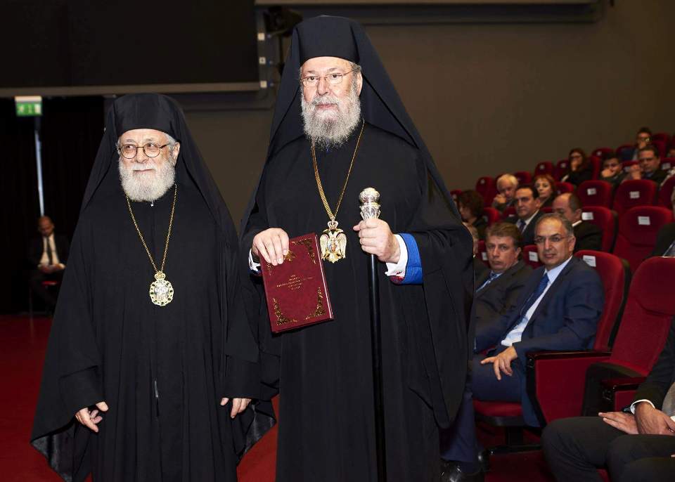 Το έργο αυτό, συνέχισε, «δεν περιορίζεται μόνο στα θρησκευτικά, λειτουργικά και πνευματικά καθήκοντα, αλλά εκτείνεται σε όλο το φάσμα των αναγκών και προκλήσεων της σύγχρονης κοινωνίας μας. Όλως ιδιαιτέρως θεωρούμε σημαντικό το ενδιαφέρον που επιδεικνύει ο Μακαριότατος για την πορεία του εθνικού μας προβλήματος, διατυπώνοντας σθεναρά την άποψη της Εκκλησίας και προβάλλοντας το διεθνώς από όποιο βήμα του δίνεται η ευκαιρία».