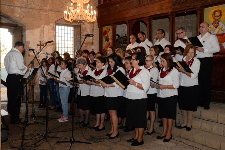 Στη Θεία Λειτουργία έψαλλε πολυμελής χορωδία από μέλη του Πολιτιστικού Συλλόγου Ρωμηοσύνη, υπό τη διεύθυνση του μουσικοδιδασκάλου κ. Γεωργίου Κυπριανού.