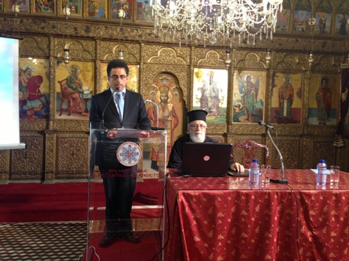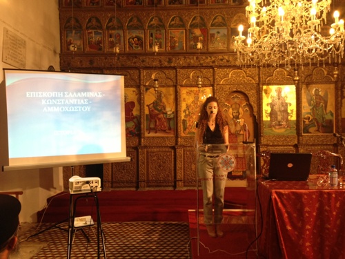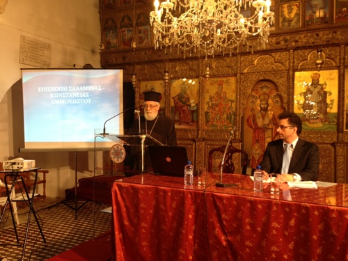 Κατά τη διάλεξη ο Πανιερώτατος αναφέρθηκε στην ιστορία και τη διαχρονική παρουσία της Επισκοπής-Μητροπόλεως Σαλαμίνος-Κωνσταντίας-Αμμοχώστου στην εκκλησιαστική, εθνική, πολιτιστική και κοινωνική ζωή της Κύπρου. Πρόκειται για παρουσίαση της μακραίωνης διαδρομής από την ίδρυση της επισκοπής Σαλαμίνος από τον πρώτο επίσκοπό της και ιδρυτή της Εκκλησίας Κύπρου Απόστολο Βαρνάβα, την αποστολική και πρωτοχριστιανική περίοδο της επισκοπής, μέχρι την περίοδο της μεγάλης ακμής της βυζαντινής περιόδου της επισκοπής Κωνσταντίας, που για αιώνες θα καταστεί η Μητρόπολη της νήσου (η έδρα δηλαδή του Αρχιεπισκόπου Κύπρου). Κορυφαία μορφή της περιόδου ο Μέγας Επιφάνιος Αρχιεπίσκοπος Κωνσταντίας, όπως βέβαια και οι διάδοχοί του, σημαντικοί ιεράρχες με οικουμενική ακτινοβολία. Ακολουθεί η μελανή περίοδος της Φραγκοκρατίας, με την κατάργηση της επισκοπής Κωνσταντίας-Αμμοχώστου και οι δύσκολοι χρόνοι της Τουρκοκρατίας, περίοδος κατά την οποία η πόλη και επαρχία Αμμοχώστου αποτελούν τμήμα της αρχιεπισκοπικής περιφέρειας, όπως και κατά την περίοδο της Αγγλοκρατίας και μετά την Ανεξαρτησία, μέχρι την ανασύστασή της το Μάιο του 2007. Η Επισκοπή-Μητρόπολη Σαλαμίνος-Κωνσταντίας-Αμμοχώστου, στην ιστορική της διαδρομή, διαδραμάτισε σημαντικό και πρωταγωνιστικό ρόλο στο ιστορικό και πολιτιστικό γίγνεσθαι της Κύπρου. Με την ανασύστασή της καλείται και πάλι να δώσει τη μαρτυρία και τη βεβαίωση της συνέχισης αυτής της αποστολής.