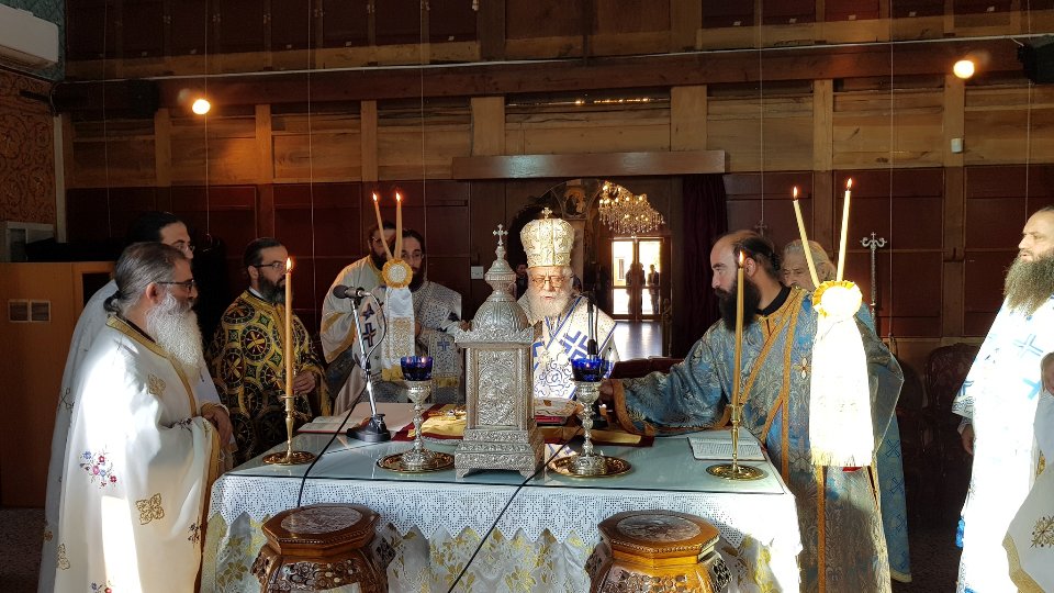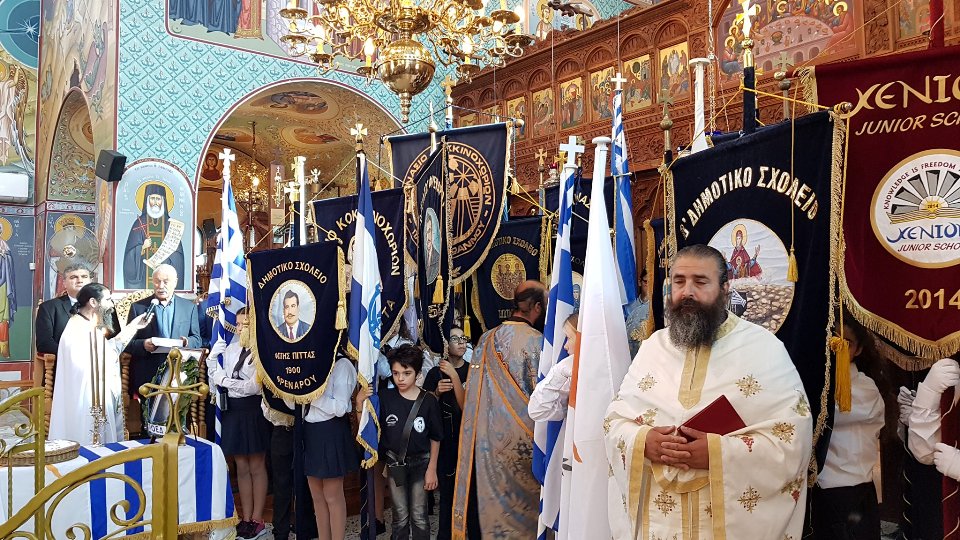 Προηγήθηκε Αρχιερατική Θεία Λειτουργία, προϊσταμένου του Πανιερωτάτου Μητροπολίτη Κωνσταντίας και Αμμοχώστου κ. Βασιλείου με την ευκαιρία της εορτής της Σύναξις των Αρχαγγέλων Μιχαήλ και Γαβριήλ και των λοιπών Ασωμάτων και Ουράνιων Αγγελικών Ταγμάτων, κατά την οποία εορτάζει (ανεπίσημα μεν) ο ιερός ναός. Τον προεξάρχοντα, πλαισίωσαν εκπαιδευτικοί κληρικοί της Μητροπόλεως. Το παρόν τους έδωσαν εκπρόσωποι του Υπουργείου Παιδείας, εκπαιδευτικών οργανώσεων, οι τοπικές αρχές και άλλα σύνολα της επαρχίας Αμμοχώστου.