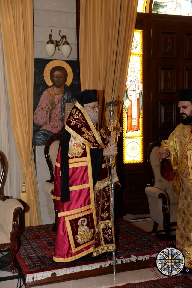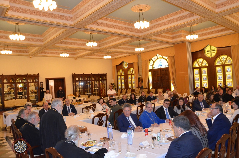 Μετά την επίσημη Δοξολογία για την πρώτη του έτους, κλήρος και λαός εν πομπή κατευθύνθηκαν προς το Μέγα Συνοδικό όπου τελέστηκε η τελετή κοπής της Βασιλόπιτας και εψάλλη ο πολυχρονισμός του εορτάζοντος Μητροπολίτου.