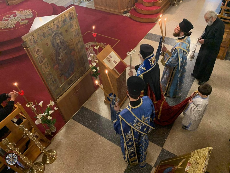 Tελέστηκε το απόγευμα της Α’ Παρασκευής των Νηστειών, 6 Μαρτίου 2020, η ακολουθία των Χαιρετισμών στον Ιερό Ναό Παναγίας στην Αγία Νάπα. Της ακολουθίας χοροστάτησε ο Πανιερώτατος Μητροπολίτης Κωνσταντίας και Αμμοχώστου κ. Βασίλειος.