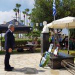 Ακολούθησε τρισάγιο και κατάθεση στεφάνων στις προτομές των ηρώων.