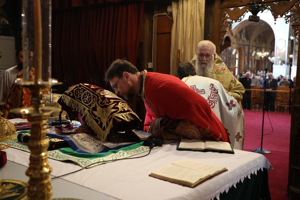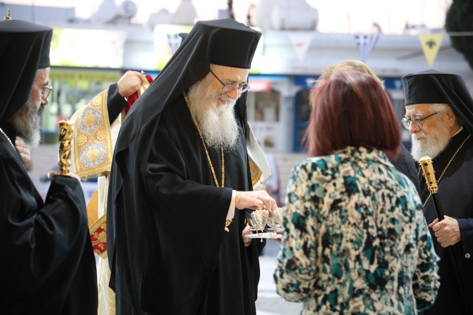 Πριν το πέρας της Θείας Λειτουργίας έγινε ανταλλαγή αναμνηστικών δώρων. Εκ μέρους της Εκκλησιαστικής Επιτροπής, ο ιερατικώς προϊστάμενος Πρωτ. Ηρακλείδιος Ξιούρος, ευχαρίστησε τον Μητροπολίτη Ιωσήφ προσφέροντάς του ως ενθύμιο και ένδειξη αγάπης και εκτιμήσεως ένα αρχιερατικό Εγκόλπιο με το εικόνισμα του Αγίου Γεωργίου.
