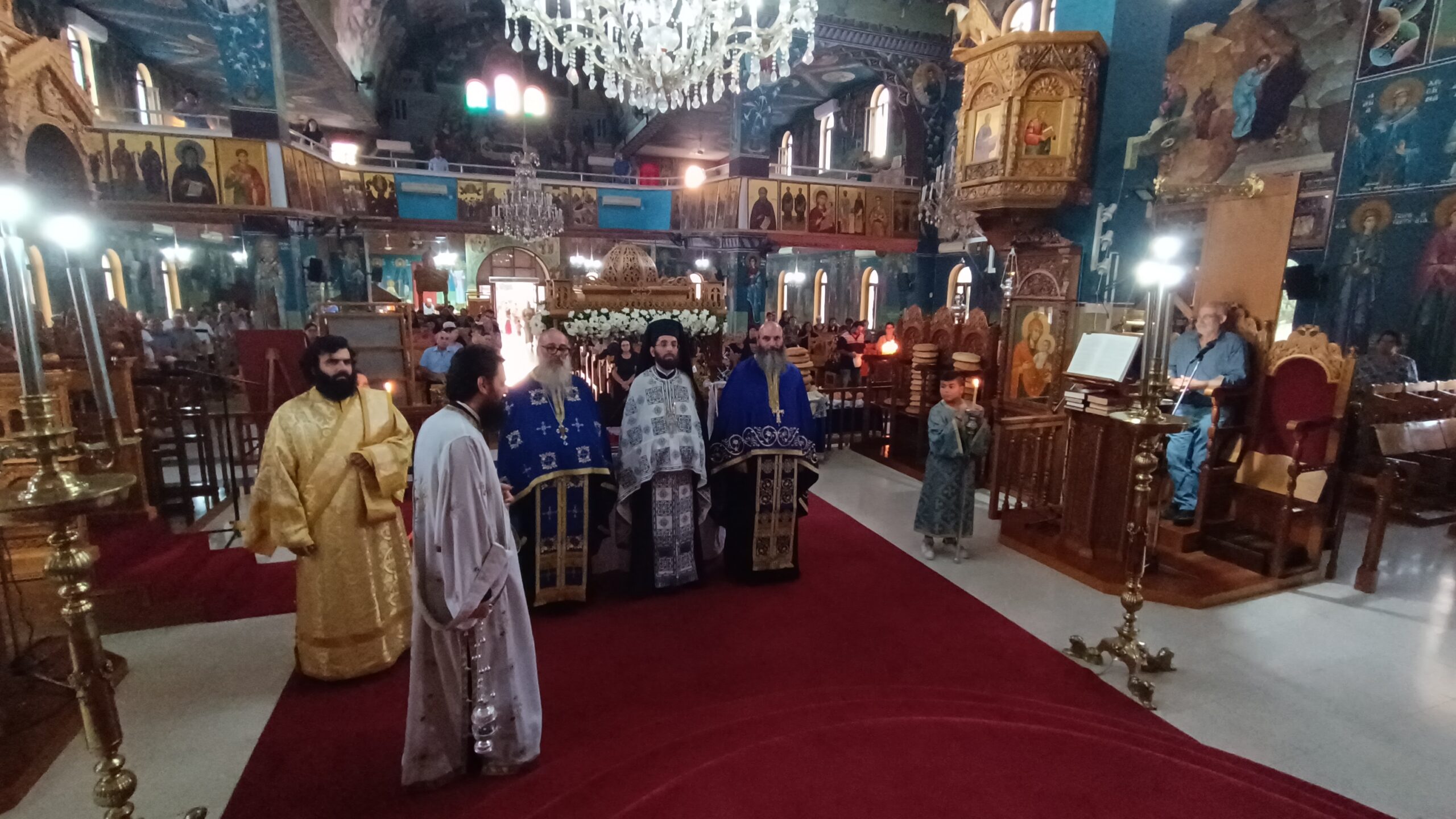 Με τον πανηγυρικό Εσπερινό την παραμονή της εορτής της Κοιμήσεως της Θεοτόκου την Δευτέρα, 14 Αυγούστου 2023, ξεκίνησαν οι λατρευτικές ακολουθίες στον πανηγυρίζοντα Ιερό Ναό Παναγίας Ελεούσης Λιοπετρίου στην παρουσία ευάριθμου εκκλησίασματος.