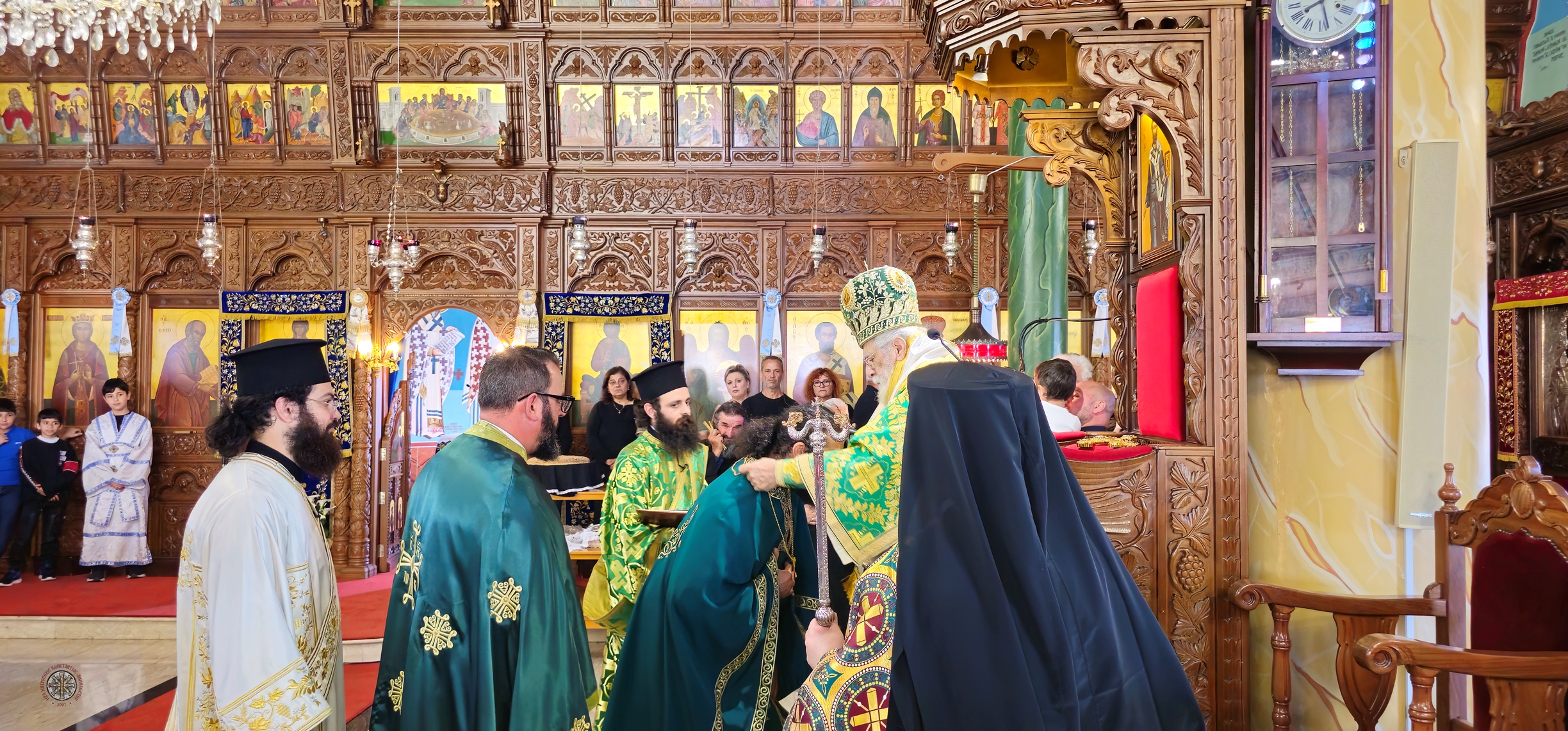 Πριν το πέρας της Θείας Λειτουργίας ο Πανιερώτατος ανακοίνωσε την απόφασή του να απονείμει το οφφίκιο του Πρωτοπρεσβυτέρου στους εφημερίους του ιερού ναού π. Ανδρέα Παπαμιχαήλ και π. Βαρνάβα Συμεώνοβ. Επιπλέον προχείρησε τον π. Ανδρέα και σε πνευματικό, προκειμένου να καλύψει και αυτός τις πνευματικές ανάγκες των πιστών του προσφυγικού συνοικισμού.