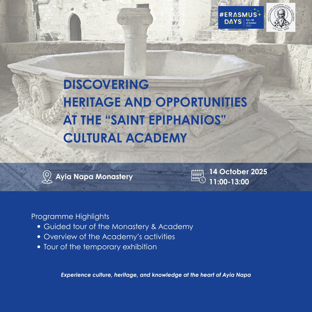 For the first time, the “Saint Epiphanios” Cultural Academy (Πολιτιστική Ακαδημία «Άγιος Επιφάνιος») is joining the celebration of Erasmus+ Days in Cyprus.