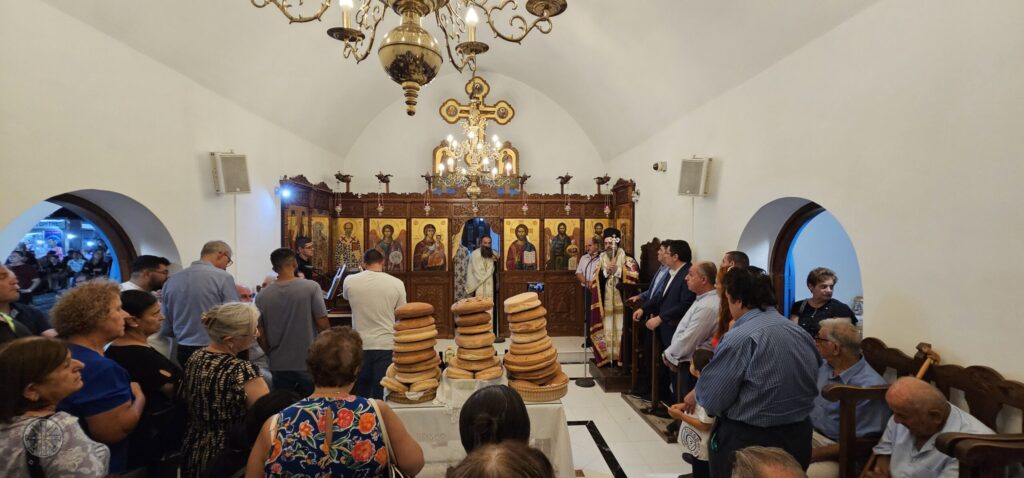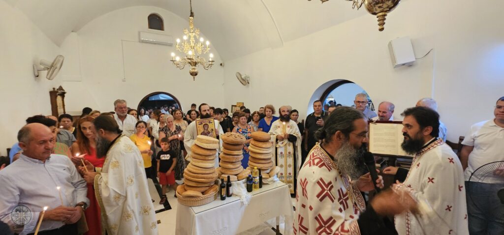 Την παραμονή της εορτής, Τρίτη, 23 Σεπτεμβρίου 2025, τελέστηκε ο Μέγας πανηγυρικός Αρχιερατικός Εσπερινός χοροστατούντος του Πανιερωτάτου Μητροπολίτη Κυρηνείας κ. Χρυσοστόμου, (ευγενώς προσκληθέντος υπό του οικείου ποιμενάρχου μας κ. Βασιλείου), πλαισιούμενου από ιερείς της Μητρόπολεως.