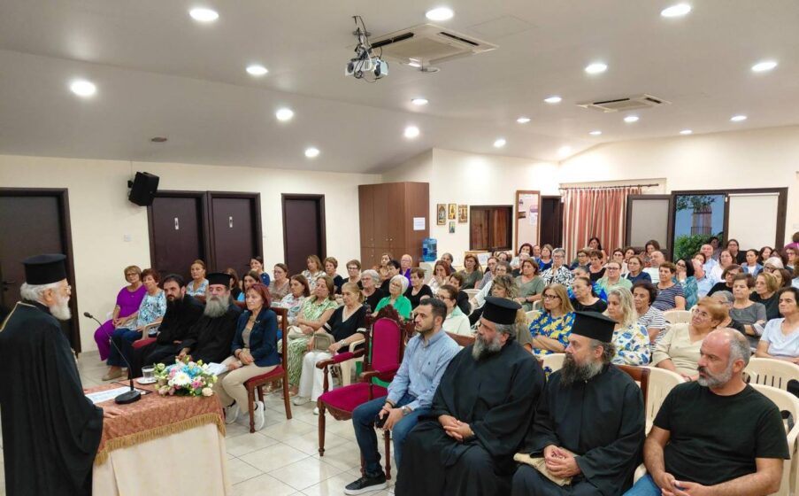 Το απόγευμα της Τρίτης, 7 Οκτωβρίου 2025 ο Πανιερώτατος Μητροπολίτης μας κ. Βασίλειος, τέλεσε την ακολουθία του Αγιασμού για τη νέα κατηχητική περίοδο του Χριστιανικού Συνδέσμου Γυναικών και Ανδρών του Μητροπολιτικού Ναού Αγίου Γεωργίου Παραλιμνίου, στο Πνευματικό Κέντρο του Ναού. Αφού ευχήθηκε σε όλες και όλους «καλή και ευλογημένη κατηχητική χρονιά» στην συνέχεια ανέπτυξε το θέμα «Ο ρόλος της γυναίκας μέσα στην Εκκλησία».