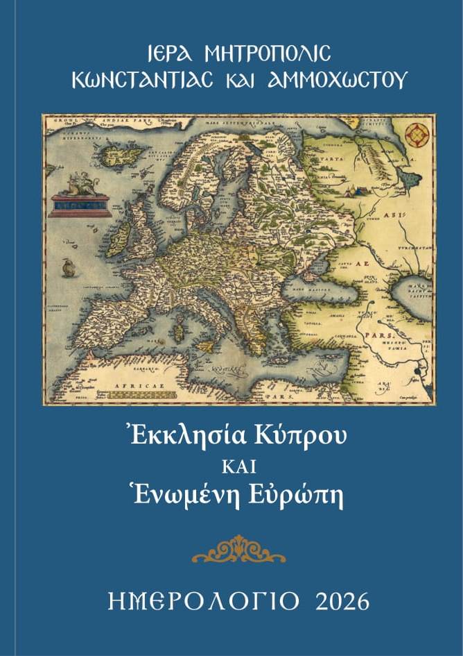 Κυκλοφόρησε το ημερολόγιο τσέπης 2026 της Ιεράς Μητροπόλεως Κωνσταντίας και Αμμοχώστου, το οποίο είναι αφιερωμένο στο θέμα «Εκκλησία Κύπρου και Ενωμένη Ευρώπη» εξ’ αφορμής της ανάληψης της προεδρίας της Ε.Ε από την Κύπρο.