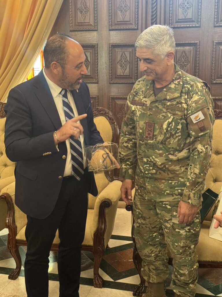 Εθιμοτυπική επίσκεψη στην Ιερά Μητρόπολη Κωνσταντίας και Αμμοχώστου στο Παραλίμνι, πραγματοποίησε το πρωί της Πέμπτης, 13 Νοεμβρίου 2025, ο νέος αρχηγός της Εθνικής Φρουράς Αντιστράτηγος Εμμανουήλ Θεοδώρου συνοδευόμενος από τον Διοικητή της 7ης Μ/Κ ΤΞ ΠΖ, Ταξίαρχο Μάριο Χουβαρτά.