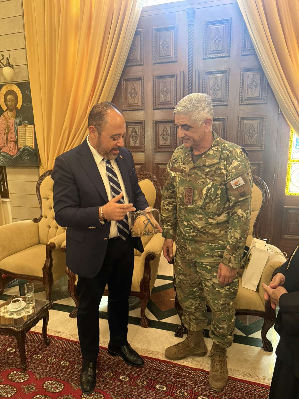 Εθιμοτυπική επίσκεψη στην Ιερά Μητρόπολη Κωνσταντίας και Αμμοχώστου στο Παραλίμνι, πραγματοποίησε το πρωί της Πέμπτης, 13 Νοεμβρίου 2025, ο νέος αρχηγός της Εθνικής Φρουράς Αντιστράτηγος Εμμανουήλ Θεοδώρου συνοδευόμενος από τον Διοικητή της 7ης Μ/Κ ΤΞ ΠΖ, Ταξίαρχο Μάριο Χουβαρτά.