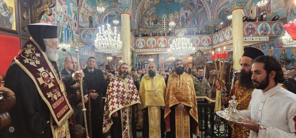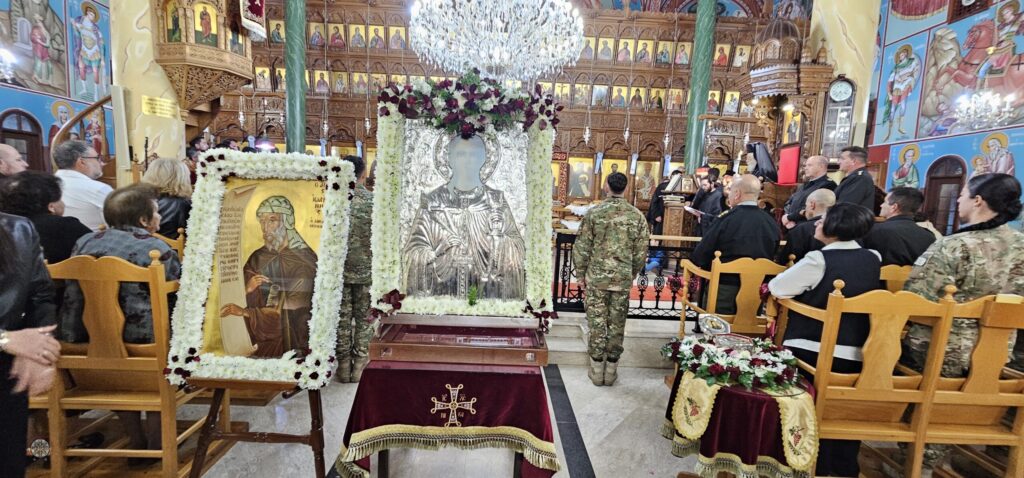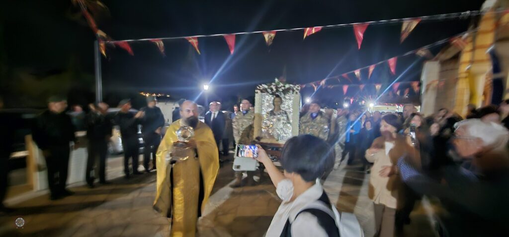 Ακολούθησε η λιτάνευση της ιεράς εικόνος των Αγίων και τμήματος λειψάνου γύρω από ναό με την παρουσία αγήματος του Στρατού ενώ παιάνιζε η μπάντα των κατηχητικών του ναού.
