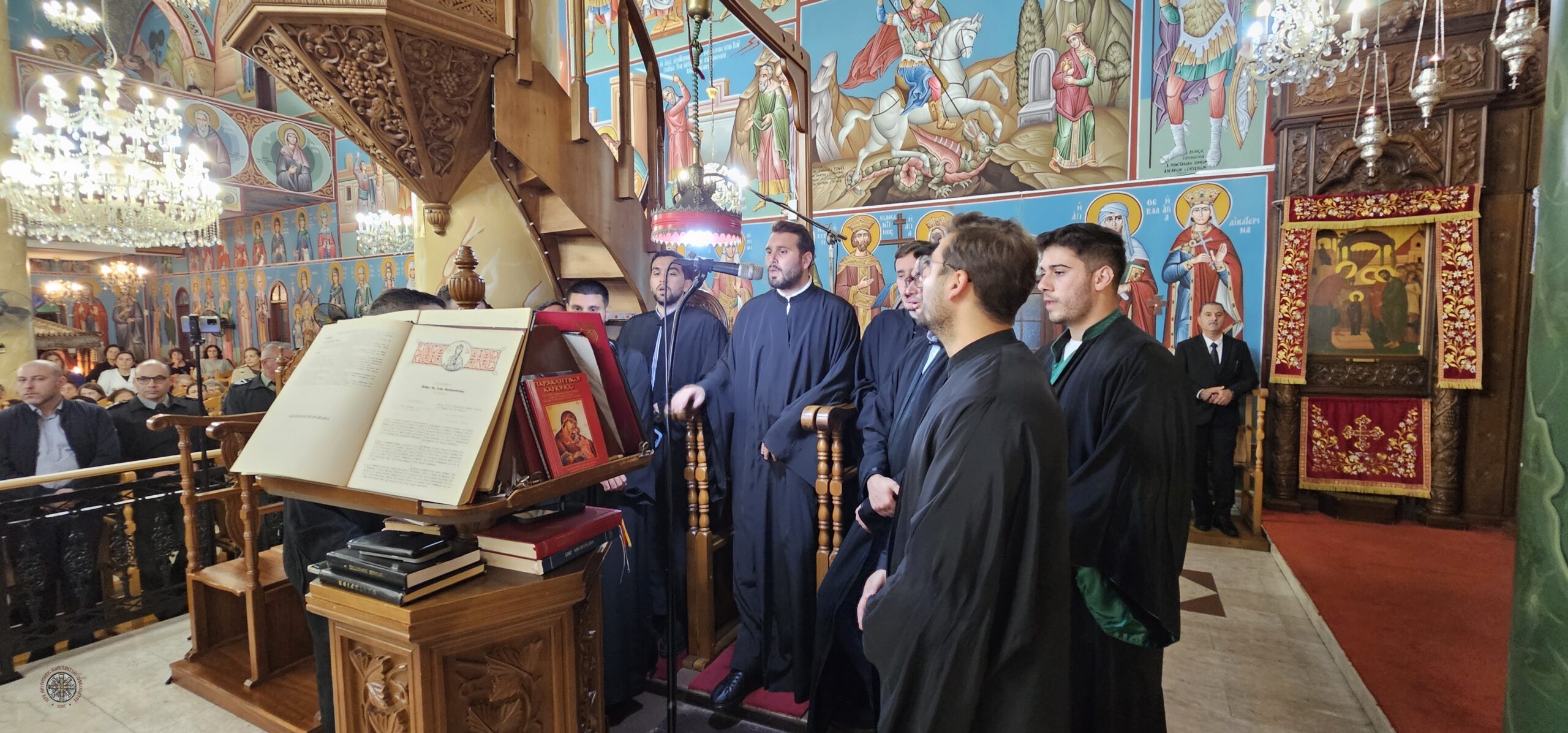 Τους ύμνους απέδωσαν άριστα ο Εντιμολογιώτατος Άρχων Υμνωδός της Αγίας του Χριστού Μεγάλης Εκκλησίας κ. Χρίστος Ψάλτης ως χοράρχης στο δεξιό αναλόγιο και από το αριστερό αναλόγιο χορός ιεροψαλτών της Ιεράς Μονής Αγίου Γεωργίου Κοντού Λάρνακας.