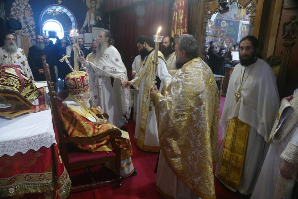 Επικαλέστηκε τέλος τις πρεσβείες του Αγίου ιερομάρτυρος Χαραλάμπους του οποίου φέρει και το όνομα, τους Αγίους Μεγαλομάρτυρες Γεώργιο και Δημήτριο αλλά και τον σήμερα εορτάζοντα Άγιο Νικόλαο Αρχιεπίσκοπο Μύρων της Λυκίας, εκζητώντας τις ευχές όλων, ο Κύριος να τον καταστήσει πιστό οικονόμο των μυστηρίων και εργάτη του αμπελώνος Του.