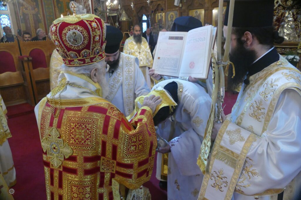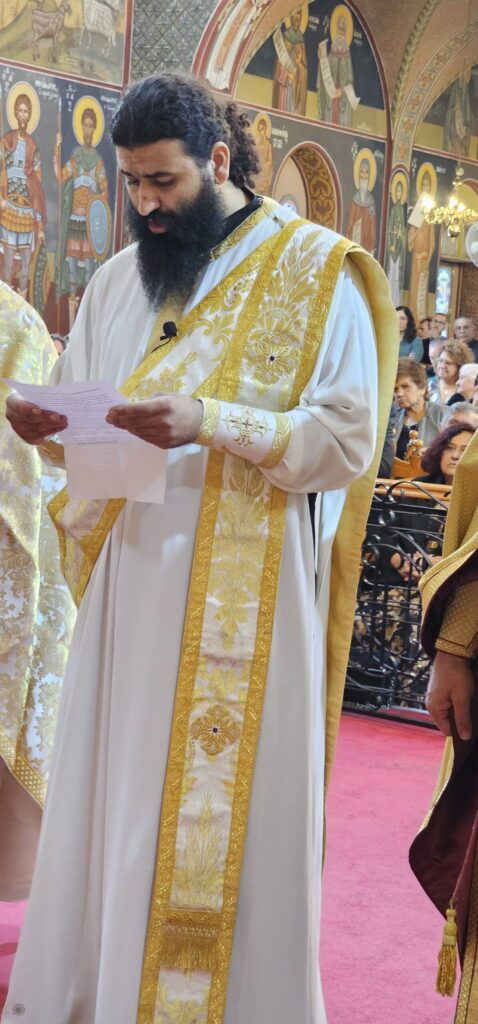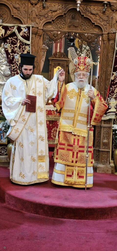 Μέσα λοιπόν, από τον Χριστό, πρόσθεσε καταληκτικά, είναι που πρέπει να προσέλθεις και εσύ σήμερα για να λάβεις τον δεύτερο βαθμό της Ιεροσύνης, τον βαθμό του Ιερέως για να έχεις πλέον την χάρη και την δύναμη από το Άγιο Πνεύμα να τελείς και εσύ τα Ιερά Μυστήρια και σου ευχόμεθα όλοι να σε στηρίζει ο ίδιος ο Χριστός σε αυτή την πορεία που είναι επίσης και μια ιεραποστολή θα την έλεγα γιατί καλούμαστε να διδάξουμε τον λαό του Θεού το Ιερό Ευαγγέλιο, την Αποκάλυψη του Ιησού Χριστού την Αποκάλυψη που ο Θεός προσφέρει σε όλους μας για να μπορέσουμε να εισέλθουμε όλοι μέσα στην ποίμνη του Ιησού Χριστού».