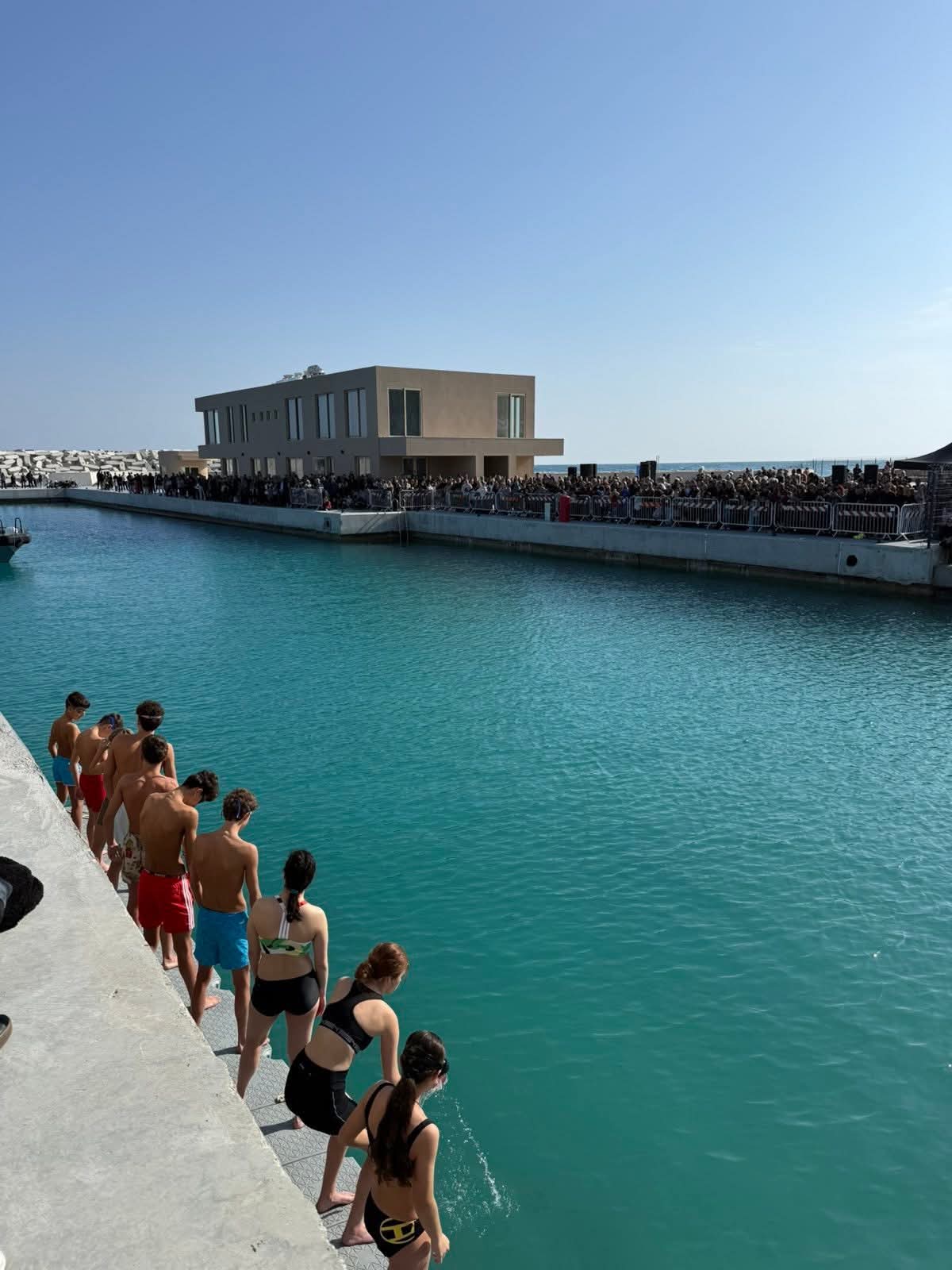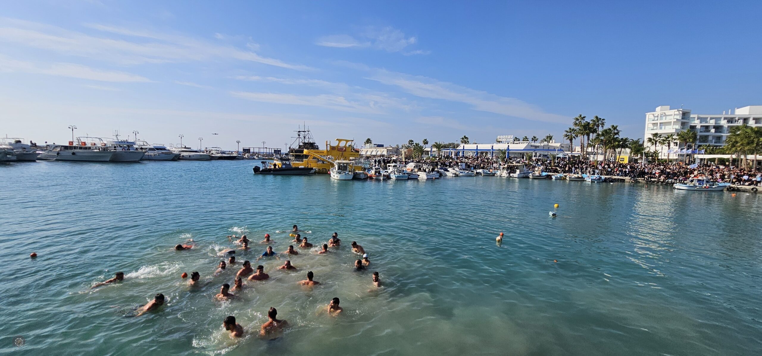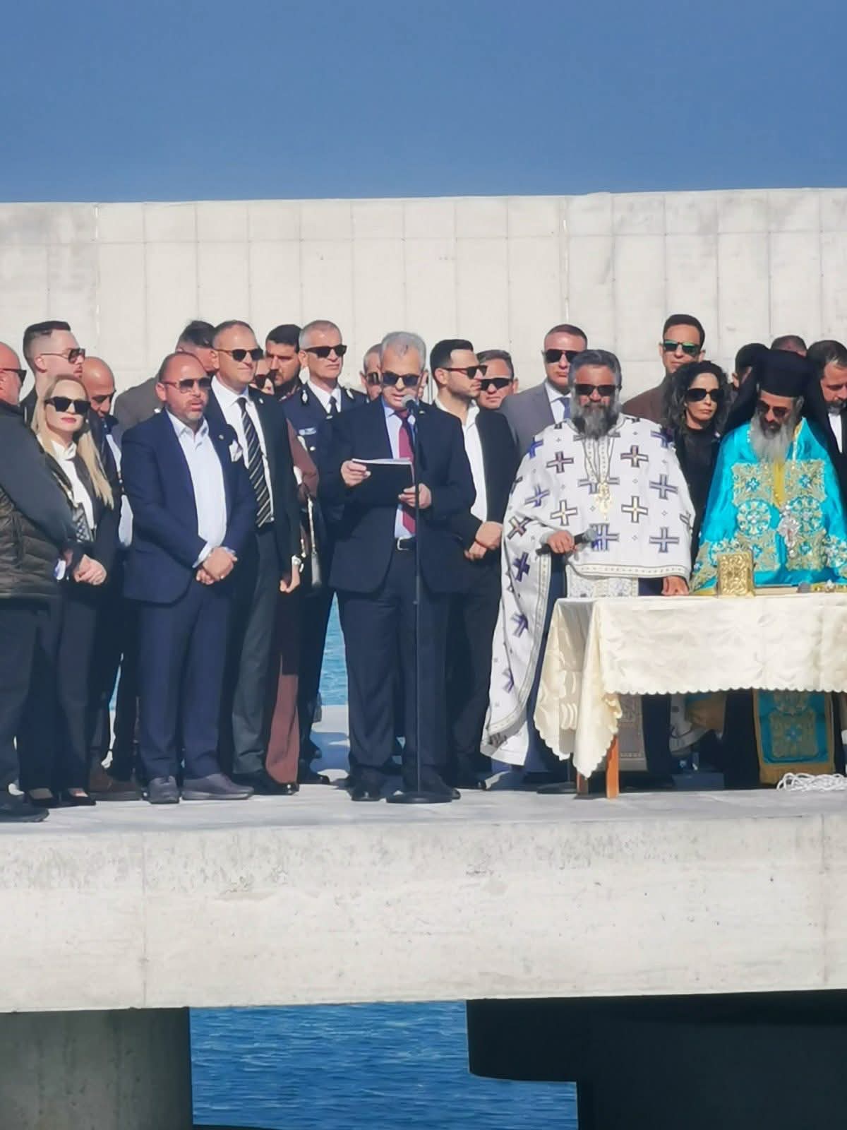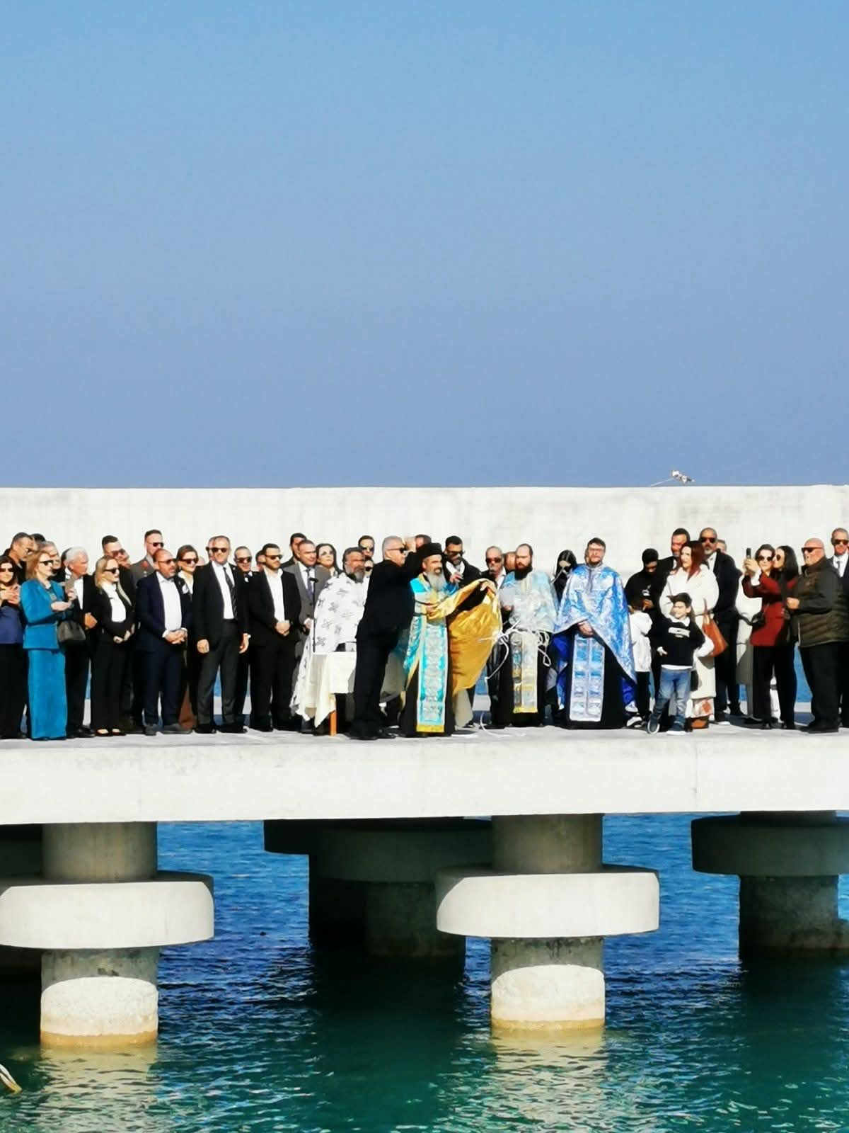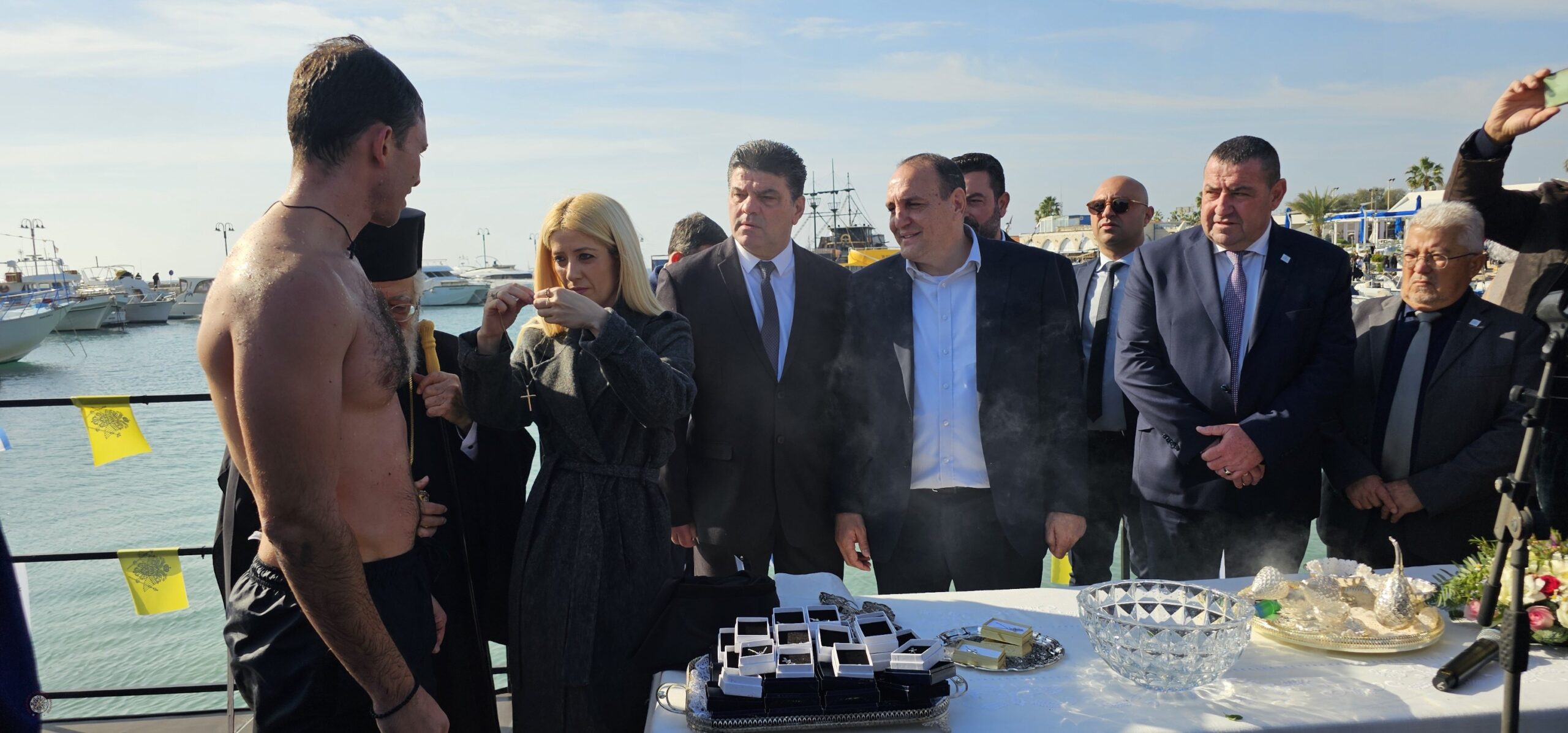 Ακολούθως σχηματίστηκε πομπή προς το λιμάνι της πόλης όπου έγινε ο αγιασμός των υδάτων και η κατάδυση του Τιμίου Σταυρού.