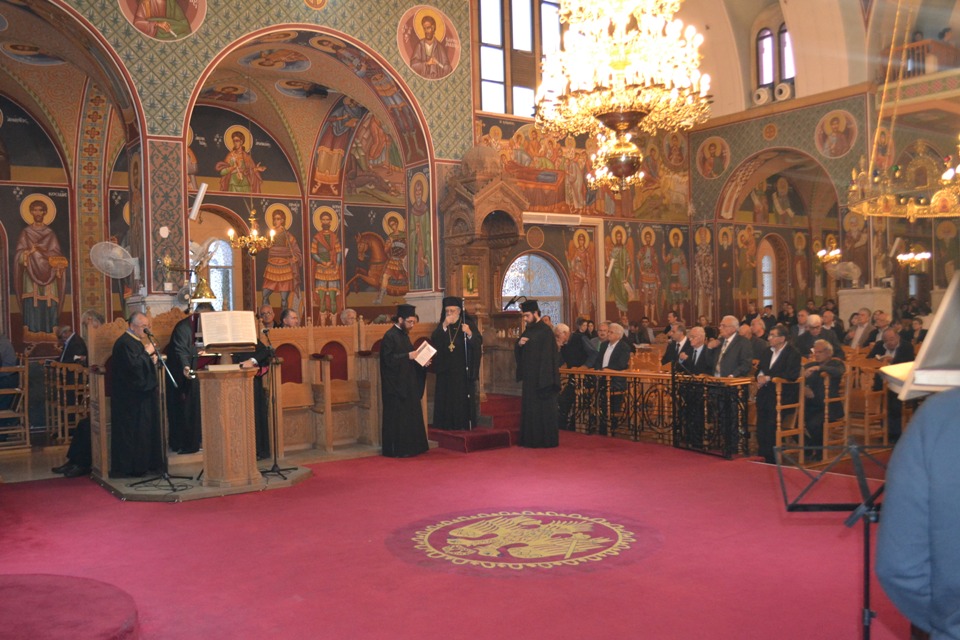 Της ακολουθίας χοροστάτησε από το Παραθρόνιο (όπως ορίζει η τάξις του Οικουμενικού Πατριαρχείου) ο επιχώριος Μητροπολίτης Κωνσταντίας και Αμμοχώστου κ. Βασίλειος άνευ εγκολπίου και μανδύου, φέρων επιστήθιον Σταυρόν και Χαζράνιον,