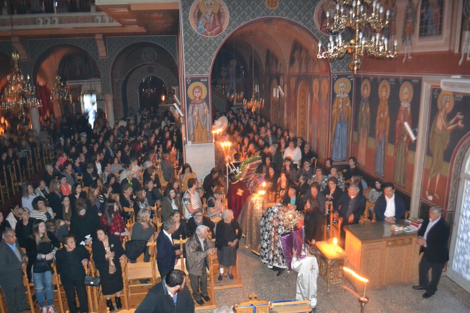 Με κατάνυξη τελέστηκε απόψε Κυριακή των Βαΐων η πρώτη ακολουθία του Νυμφίου (δηλ. ο Όρθρος της Αγίας και Μεγάλης Δευτέρας) στον Μητροπολιτικό Αγίου Γεωργίου στο Παραλίμνι .