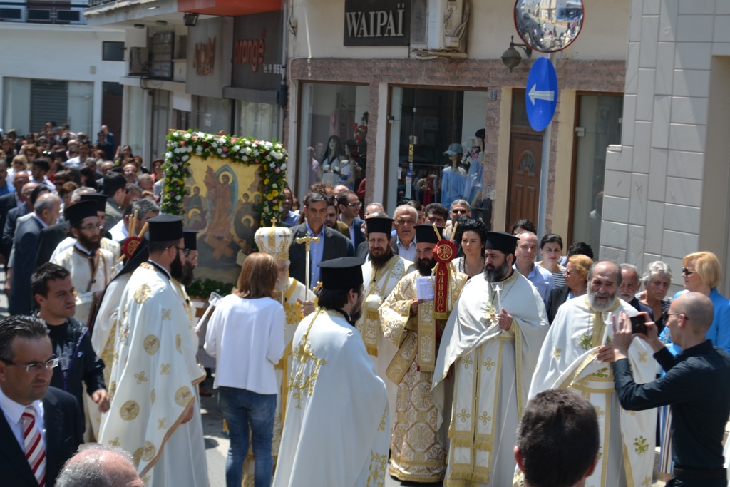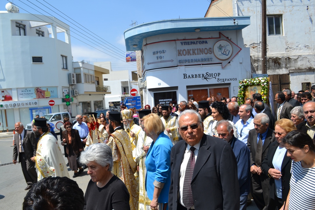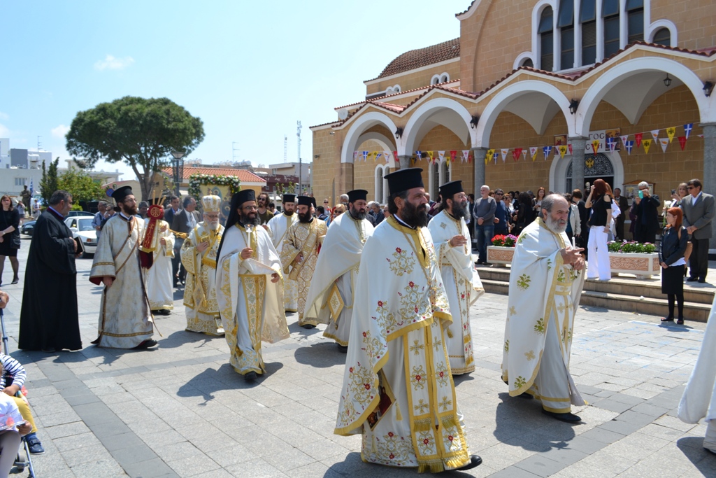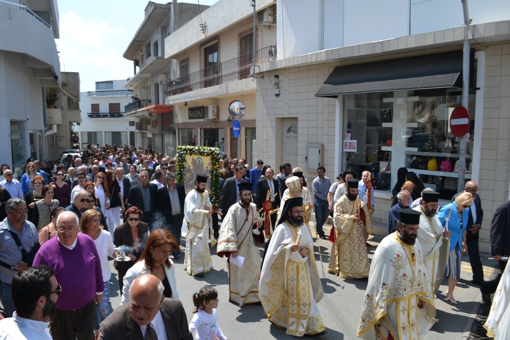 Ακολούθησε λιτανεία μέσα από τους κεντρικούς δρόμους της πόλης με την συνοδεία της Φιλαρμονικής Μπάντας του Κατηχητικού Αγίου Γεωργίου και δέηση στους παλαιούς ναούς της Αγίας Άννας και του Αγίου Γεωργίου. Κατά την διάρκεια της λιτανείας γυναίκες βρισκόντουσαν στο δρόμο όπου κάπνιζαν και έρραναν την της Εικόνα της Αναστάσεως. Η πομπή κατέληξε στο Συνοδικό όπου ο Επισκόπος απεκδύθει τα ιερά άμφια και αντάλλαξε με τους κληρικούς και τους πιστούς τον Αναστάσιμο Χαιρετισμό, διανέμοντας πασχαλινά αυγά.