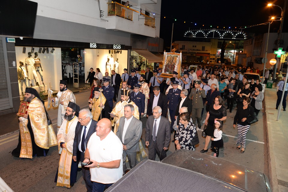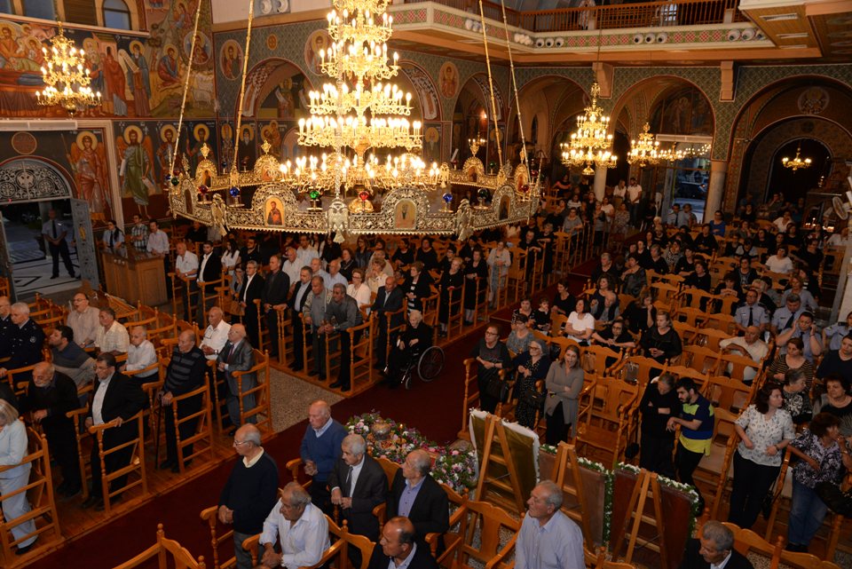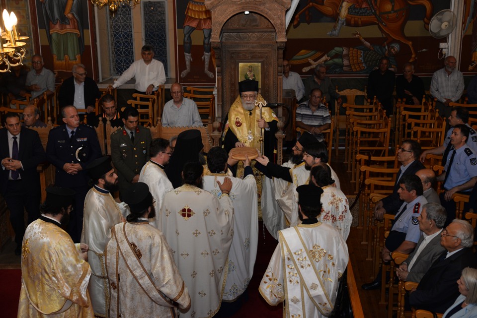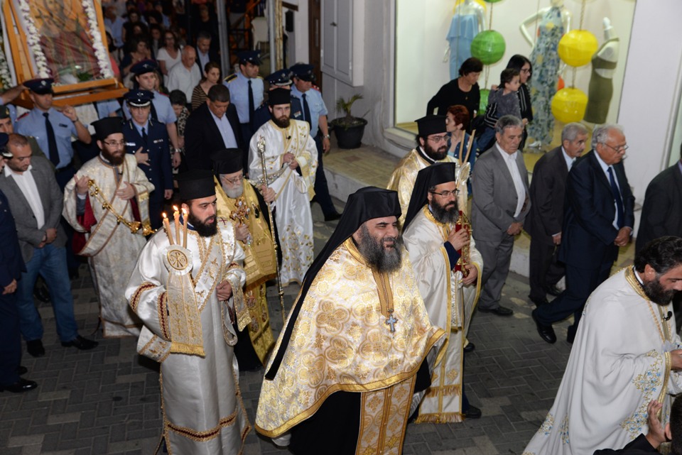Ακολούθησε λιτάνευση των ιερών λειψάνων και των ιερών εικόνων στους κεντρικούς δρόμους της πόλεως.