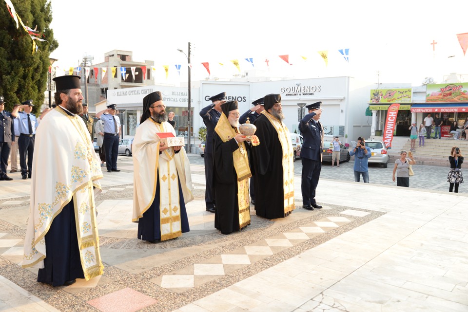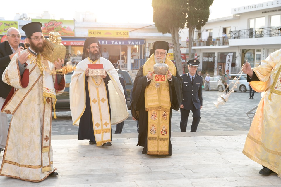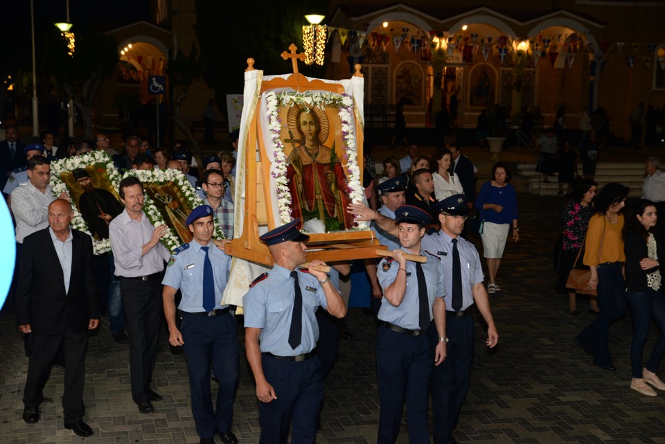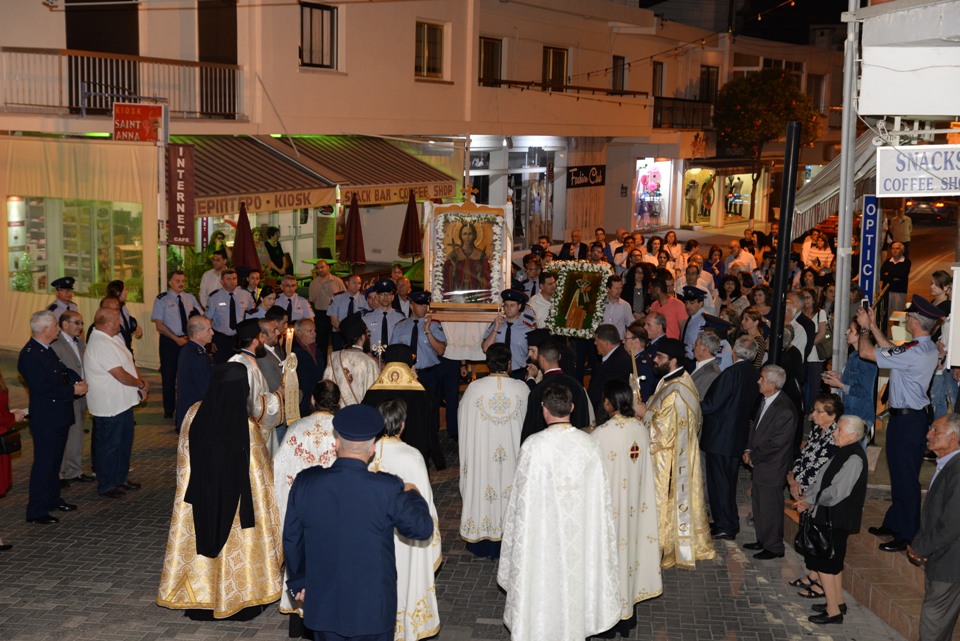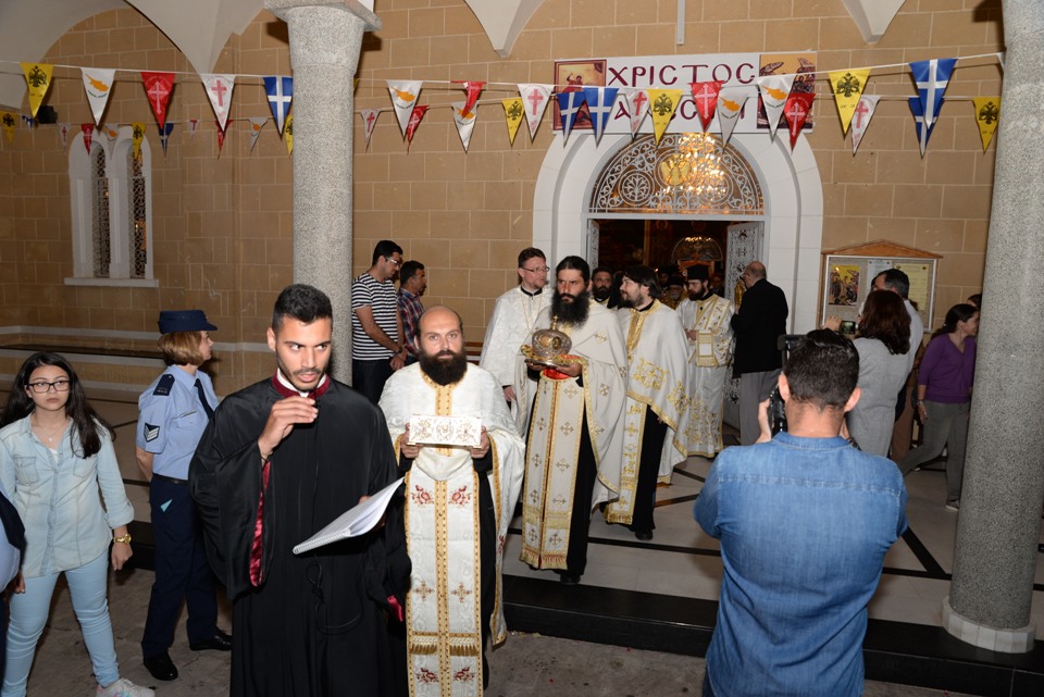 Ακολούθησε αρχιερατικός εσπερινός για την εορτή της Αγίας Ειρήνης, προστάτιδας της Αστυνομικής Διεύθυνσης Αμμοχώστου. Πριν το τέλος του Εσπερινού, ο Πανιερώτατος ευχαρίστησε θερμά στο πρόσωπο του πανοσιολογιώτατου εφόρου, τον Πανιερώτατο Μητροπολίτη Κύκκου κ. Νικηφόρο για την άδεια και ευλογία της μεταφοράς των ιερών λειψάνων και ευχήθηκε επίσης και προς την Αστυνομική Δύναμη Κύπρου, αναφερόμενος στο δύσκολο έργο το οποίο επιτελούν.