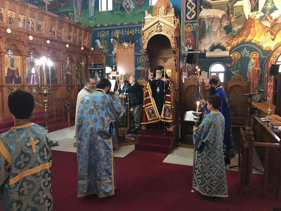 Το απόγευμα της Παρασκευής 24 Μαρτίου 2017, ο Πανιερώτατος Μητροπολίτης Κωνσταντίας και Αμμοχώστου κ. Βασίλειος, χοροστάτησε κατά την ακολουθία του Εσπερινού για την εορτή του Ευαγγελισμού της Θεοτόκου και ανέγνωσε την Δ’ Στάση των Χαιρετισμών στον Ιερό Ναό Παναγίας Ελεούσης Λιοπετρίου.