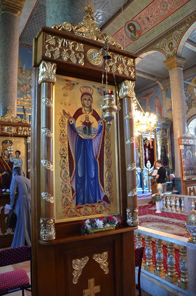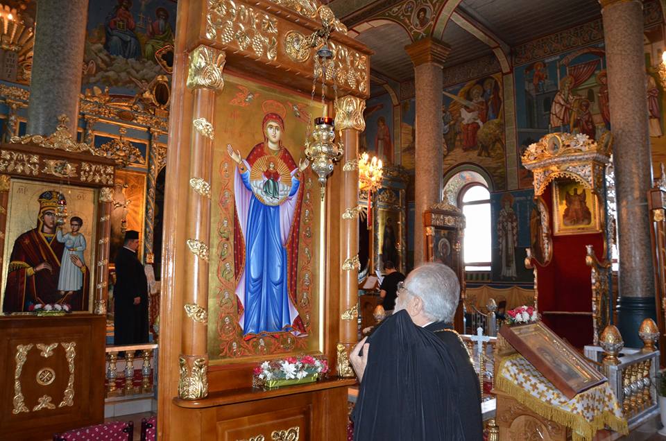 Το απόγευμα της Τετάρτης 28 Ιουνίου, ο Πανιερώτατος παρέστη συμπροσευχόμενος εκ του Ιερού βήματος κατά τις ακολουθίες του Εσπερινού και του Όρθρου στον Καθεδρικό ναό των Αγίων Αποστόλων Πέτρου και Παύλου. Στο βόρειο κλίτος του ναού βρίσκεται τοποθετημένο πιστόν αντίγραφο της εικόνας της Αγίας Νάπας το οποίο είχε δωρίσει ο ίδιος ο Μητροπολίτης μας κατά την μεταφορά της αρχαίας εικόνας τον Ιούνιο του 2011.