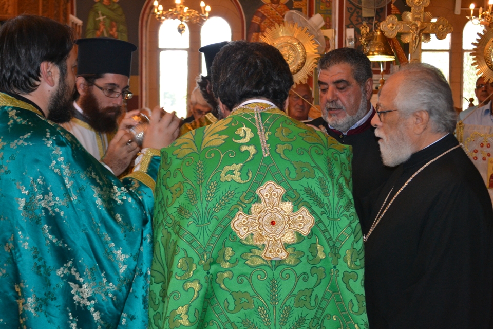 Τη Θεία Λειτουργία τέλεσαν οι ιερείς του ναού πλαισούμενοι από τους διακόνους της Μητροπόλεως. Ο Πανιερώτατος Μητροπολίτης Κωνσταντίας και Αμμοχώστου κ. Βασίλειος έλαβε μέρος στην τελετή της Υψώσεως του Τιμίου Σταυρού ενώ έψαλλε κατά τη Θεία Λειτουργία. . Στο ιερό βήμα παρέστη συμπροσευχόμενος και ο Σεβασμιώτατος Μητροπολίτης Σασίμων κ. Γεννάδιος