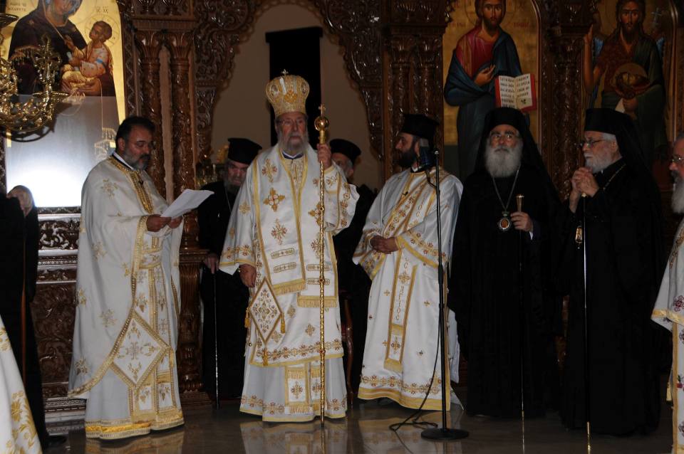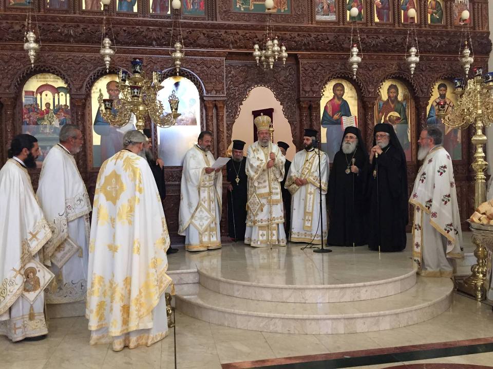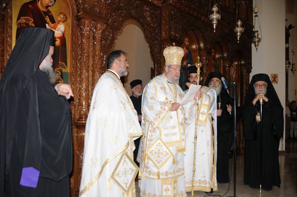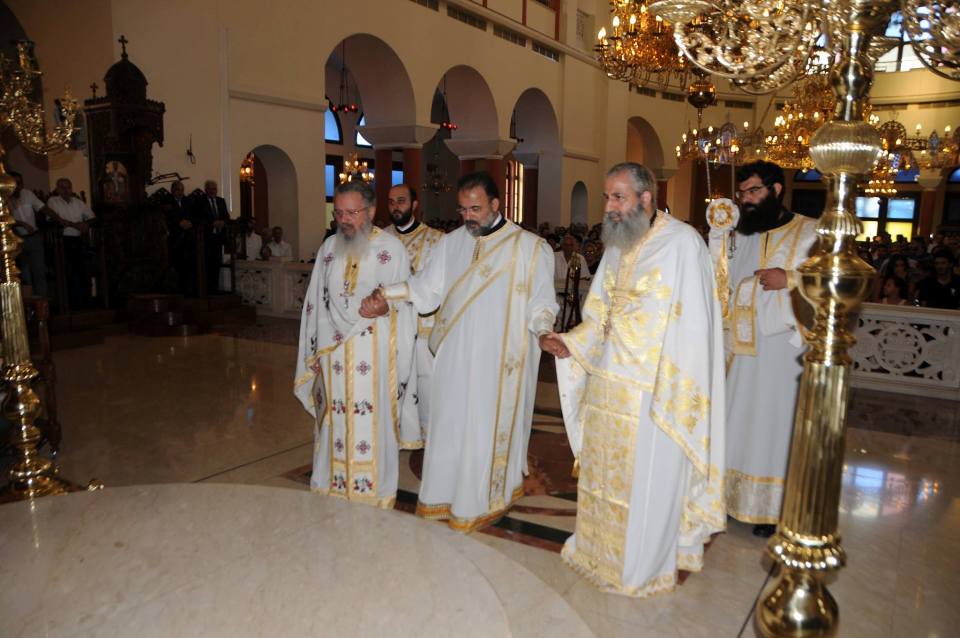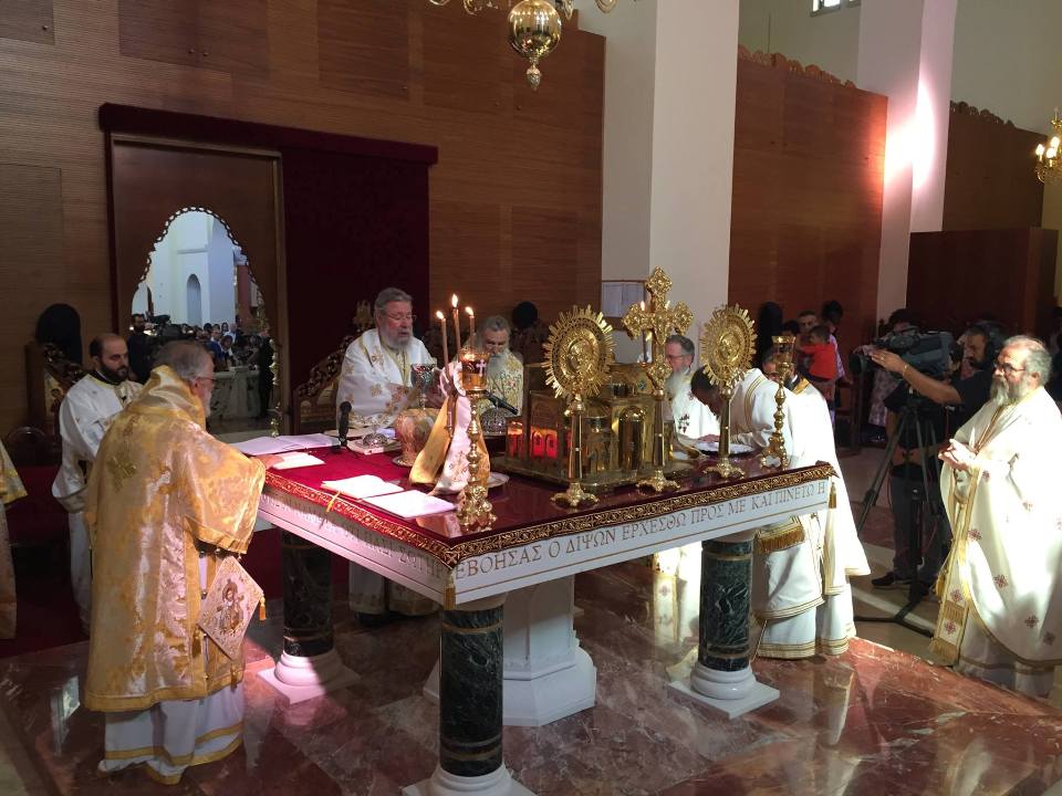 Του Αρχιερατικού Συλλείτουργου προέστη η Α.Μ. ο Αρχιεπίσκοπος Κύπρου κ. Χρυσόστομος, ενώ συλλειτούργησαν οι Σεβασμιώτατος Μητροπολίτης Βόστρων κ. Τιμόθεος, έξαρχος του Παναγίου Τάφου εν Κύπρω, ο Πανιερώτατος Μητροπολίτης Κωνσταντίας και Αμμοχώστου κ. Βασίλειος και ο Θεοφιλέστατος Επίσκοπος Αρσινόης κ. Νεκτάριος. Έλαβαν επίσης μέρος αρκετοί κληρικοί της Αρχιεπισκοπικής περιφέρειας και από το εξωτερικό, ο πρωτοσύγκελλος της Μητροπόλεως Κωνσταντίας Αρχιμ. Αυγουστίνος Κκαράς και οι Διάκονοι Επιφάνιος και Νικόλαος.