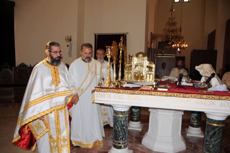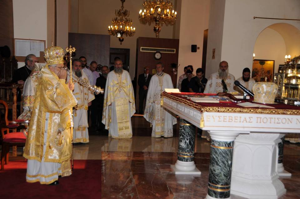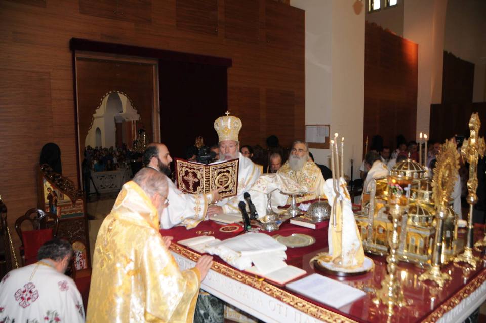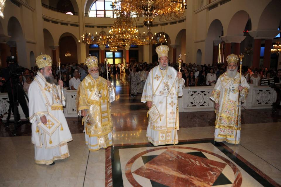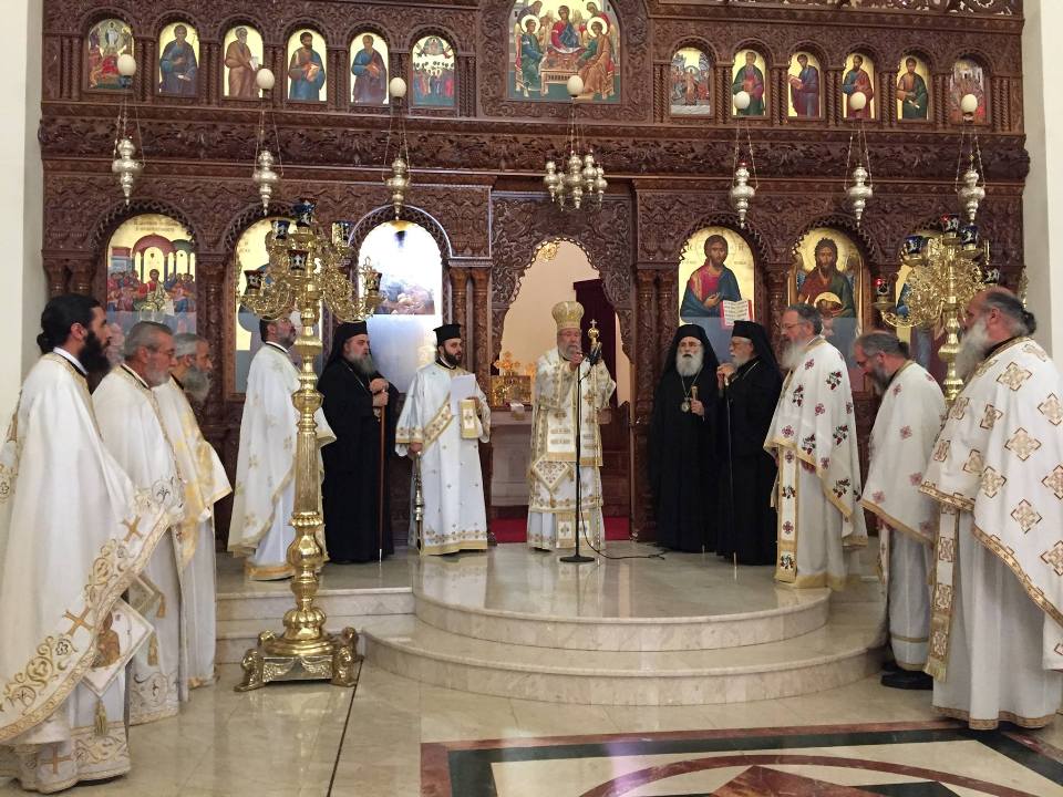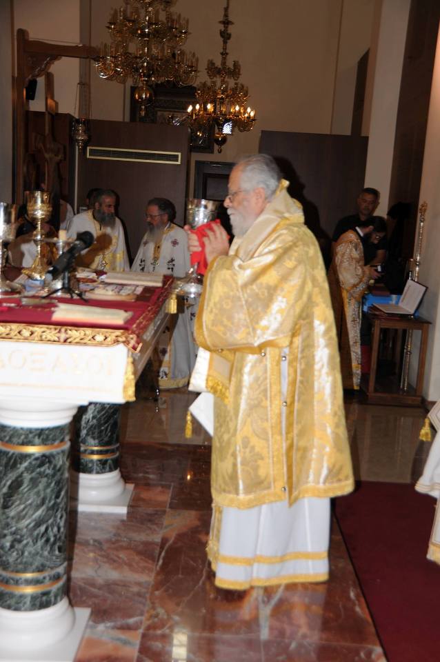 Του Αρχιερατικού Συλλείτουργου προέστη η Α.Μ. ο Αρχιεπίσκοπος Κύπρου κ. Χρυσόστομος, ενώ συλλειτούργησαν οι Σεβασμιώτατος Μητροπολίτης Βόστρων κ. Τιμόθεος, έξαρχος του Παναγίου Τάφου εν Κύπρω, ο Πανιερώτατος Μητροπολίτης Κωνσταντίας και Αμμοχώστου κ. Βασίλειος και ο Θεοφιλέστατος Επίσκοπος Αρσινόης κ. Νεκτάριος. Έλαβαν επίσης μέρος αρκετοί κληρικοί της Αρχιεπισκοπικής περιφέρειας και από το εξωτερικό, ο πρωτοσύγκελλος της Μητροπόλεως Κωνσταντίας Αρχιμ. Αυγουστίνος Κκαράς και οι Διάκονοι Επιφάνιος και Νικόλαος.