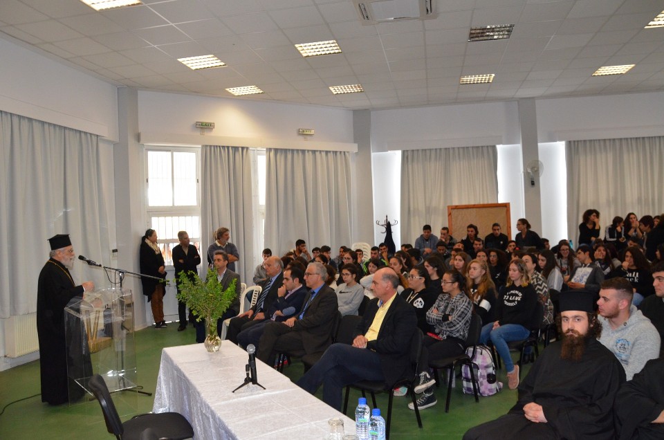 Με πρωτοβουλία του Πανιερωτάτου, στα πλαίσια του Ελεύθερου Πανεπιστημίου Αμμοχώστου, σήμερα Παρασκευή 24 Νοεμβρίου 2017 πραγματοποιήθηκαν ομιλίες σε μαθητές σχολείων Μέσης Εκπαίδευσης της επαρχίας Αμμοχώστου από τον Πρύτανη του Πανεπιστημίου Κύπρου κ. Κωνσταντίνο Χριστοφίδη και τον Πρόεδρο του Οργανισμού Νεολαίας Κύπρου κ. Παναγιώτη Σεντώνα.