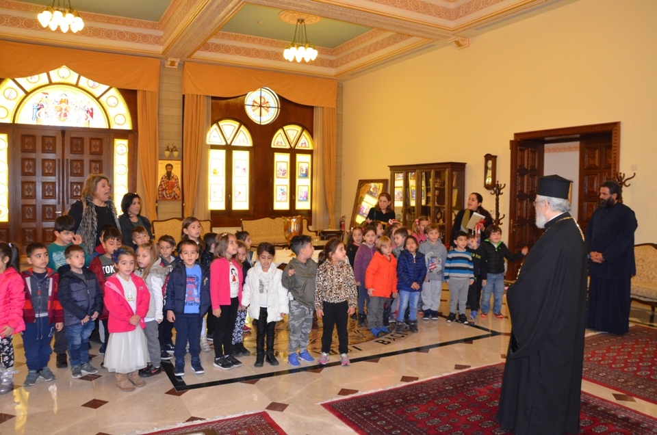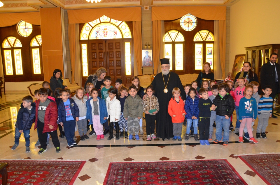 Το κατώφλι του Επισκοπείου πέρασαν επίσης μικροί μαθητές του Γιώρκειου Δημοτικού Νηπιαγωγείου συνοδευόμενοι από τις δασκάλες τους για να ψάλλουν τα χριστουγεννιάτικα κάλαντα και να δώσουν τις ευχές τους στον Πανιερώτατο και τους εργαζομένους στην Ιερά Μητρόπολη.