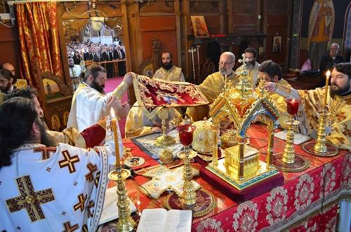 Των εγκαινίων προηγήθηκε Αρχιερατικό Συλλείτουργο στον Μητροπολιτικό ναό του Αγίου Γεωργίου Παραλιμνίου, προϊσταμένου του Πανιερωτάτου Μητροπολίτου Κωνσταντίας και Αμμοχώστου κ. Βασιλείου. Συμμετείχαν ο Σεβασμιώτατος Μητροπολίτης Αρκαδίας κ. Βασίλειος (Πατριαρχείο Αντιοχείας) και ο Θεοφιλέστατος Επίσκοπος Μεσαορίας κ. Γρηγόριος, καθώς και κληρικοί της Ιεράς Μητροπόλεως Κωνσταντίας.