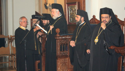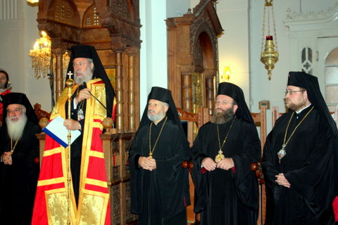 Καλωσορίζω εκ μέρους της Ιεραρχίας και του πληρώματος της Αποστολικής Εκκλησίας της Κύπρου όλους εσάς τους διακεκριμένους εκπροσώπους των κατά τόπους αυτοκεφάλων Ορθοδόξων Εκκλησιών καθώς και τους εκπροσώπους της Ρωμαιοκαθολικής Εκκλησίας και εύχομαι ευόδωση των εργασιών σας.
