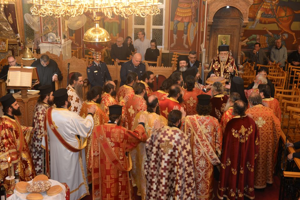 Την παραμονή της εορτής, Κυριακή 31 Δεκεμβρίου 2017 τελέστηκε ο Μέγας Αρχιερατικός εσπερινός στον Μητροπολιτικό ναό του Αγίου Γεωργίου, χοροστατούντος του Πανιερωτάτου, με τη συγχοροστασία των Θεοφιλεστάτων Επισκόπων Αμαθούντος κ. Νικολάου και Μεσαορίας κ. Γρηγορίου και τη συμμετοχή του ιερού κλήρου της Μητροπόλεως.