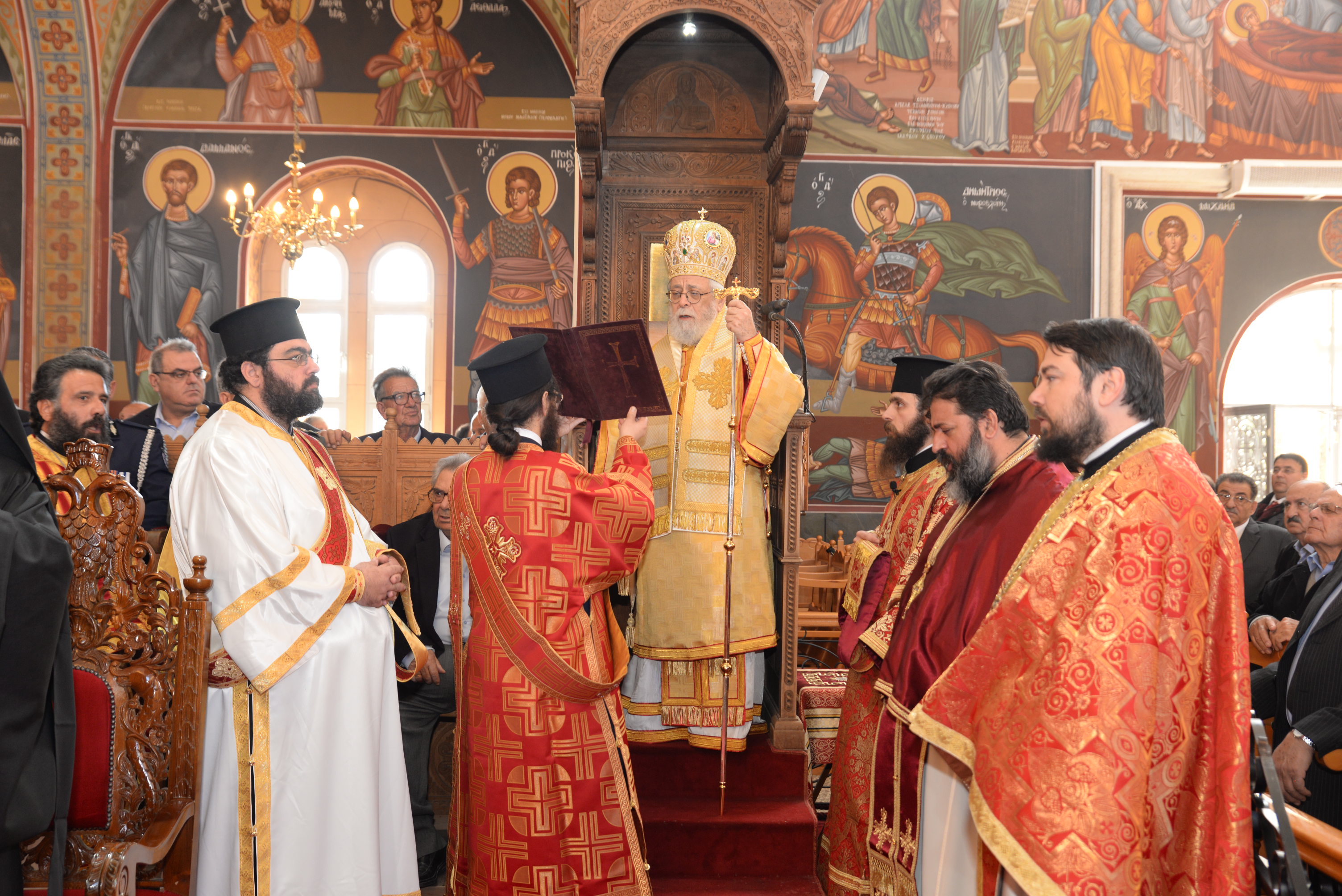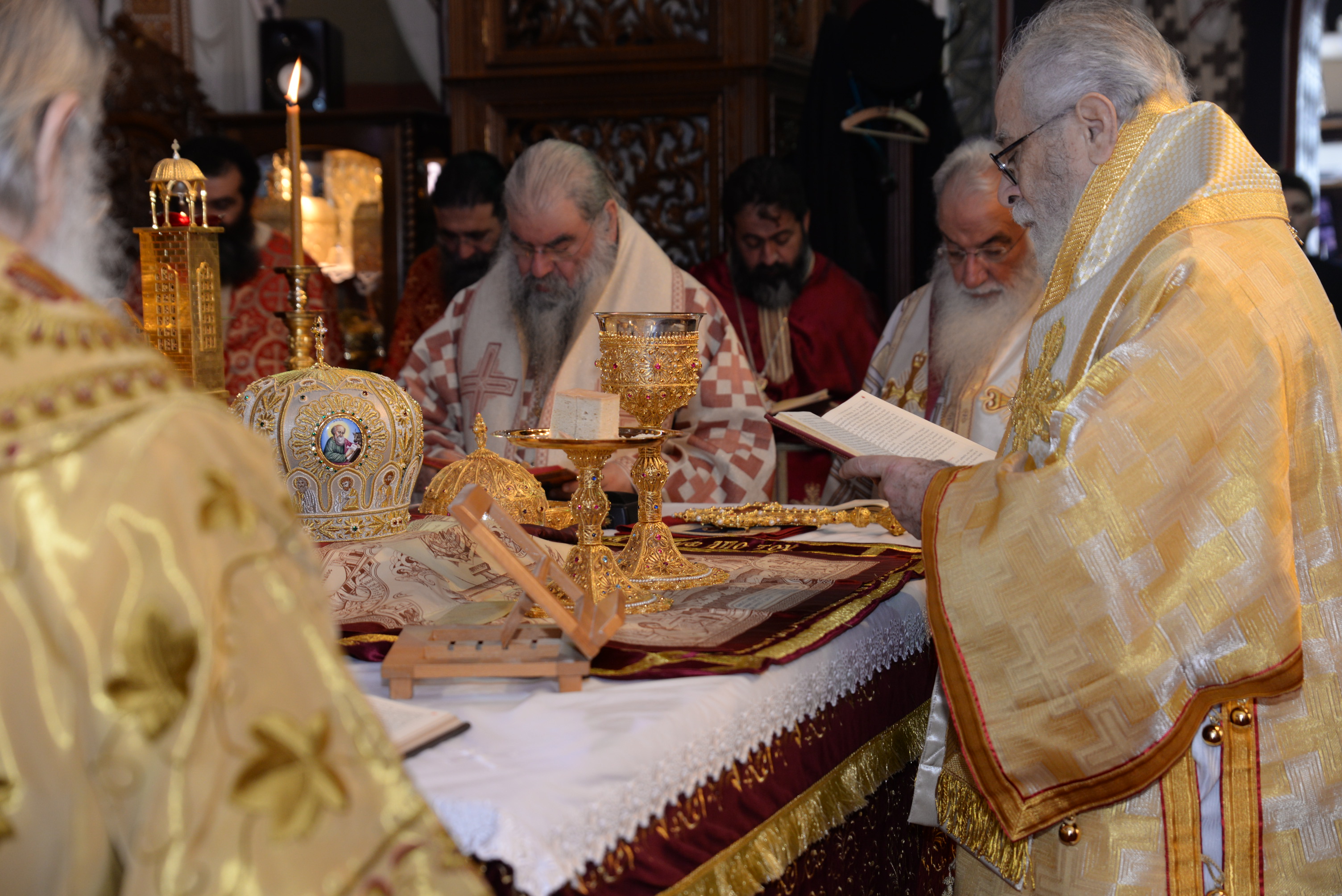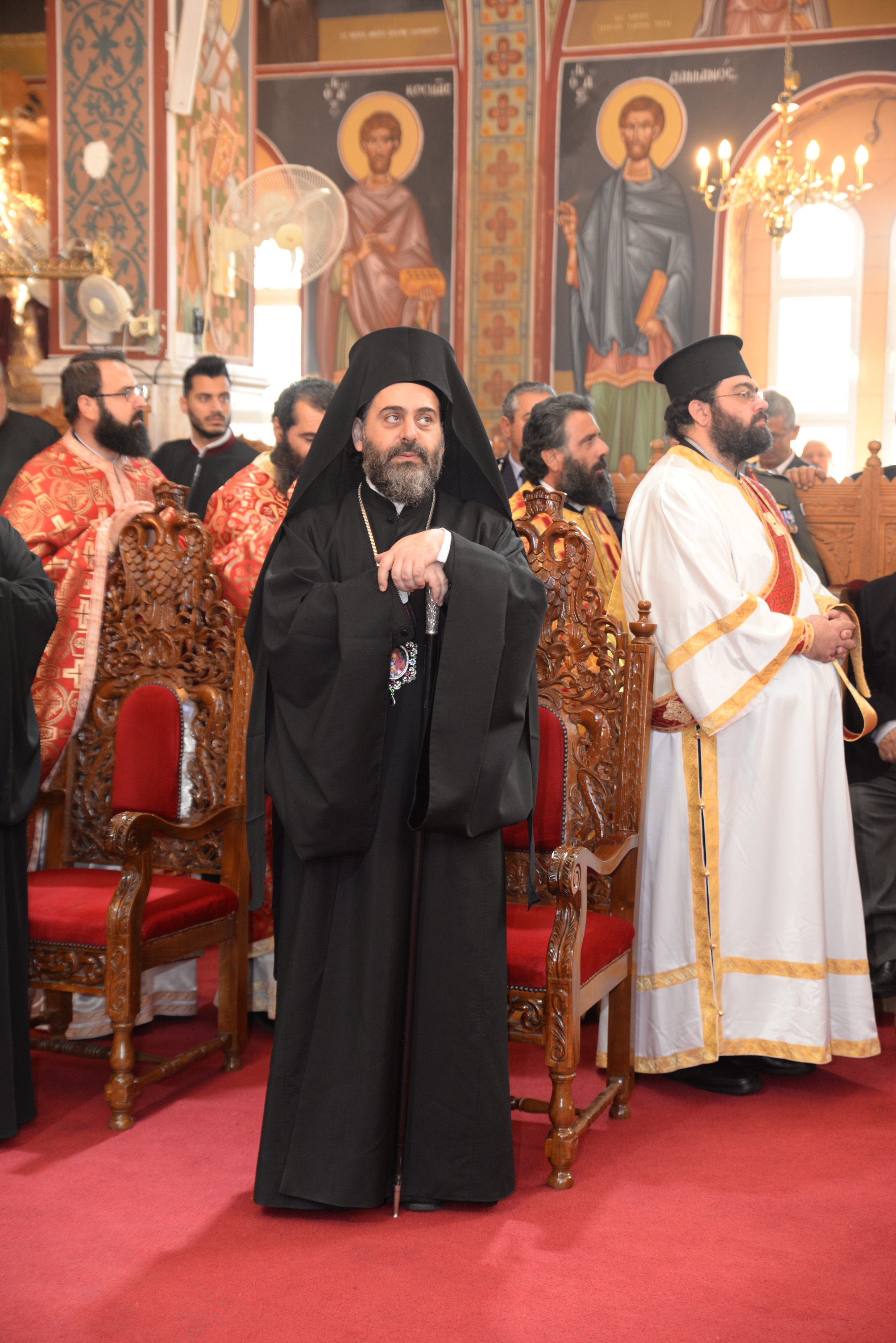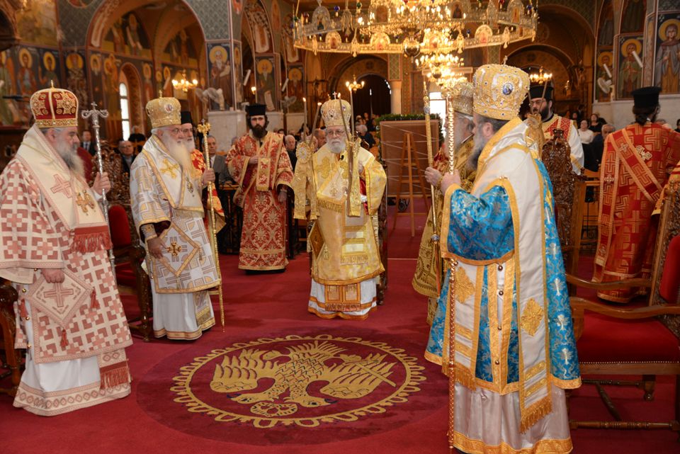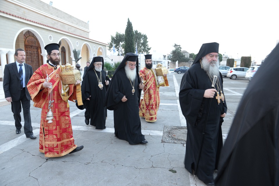Με τον εορτάζοντα Μητροπολίτη συλλειτούργησαν οι Σεβασμιώτατοι Μητροπολίτες Ναϊρόμπι κ. Μακάριος, Βόστρων κ. Τιμόθεος, έξαρχος του Παναγίου Τάφου εν Κύπρω, Λεμεσού κ. Αθανάσιος και ο Θεοφιλέστατος Επίσκοπος Αρσινόης κ. Νεκτάριος. Στο ιερό βήμα παρέστη συμπροσευχόμενος ο Πανιερώτατος Μητροπολίτης Κυρηνείας κ. Χρυσόστομος. Στη Θεία Λειτουργία έλαβαν μέρος επίσης οι πανοσιολογιώτατοι Αρχιμανδρίτες Ιερώνυμος Πυλιώτης, Αυγουστίνος Κκαράς, πρωτοσύγκελλος της Ιεράς Μητροπόλεως, Πρωτ. Χρίστος Βούργιας, Αρχιερατικός Επίτροπος, ιερείς και διάκονοι της Ιεράς Μητροπόλεως.