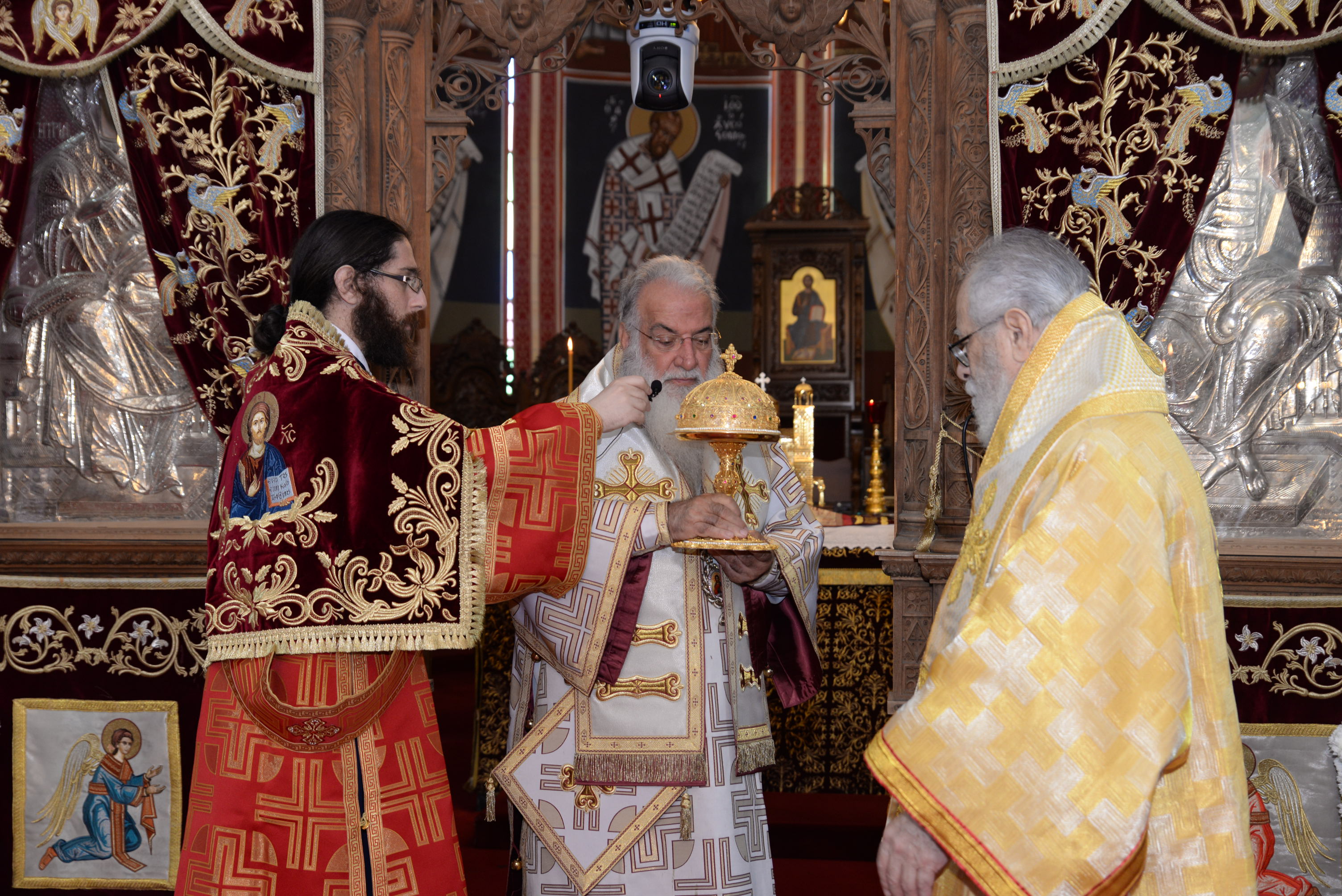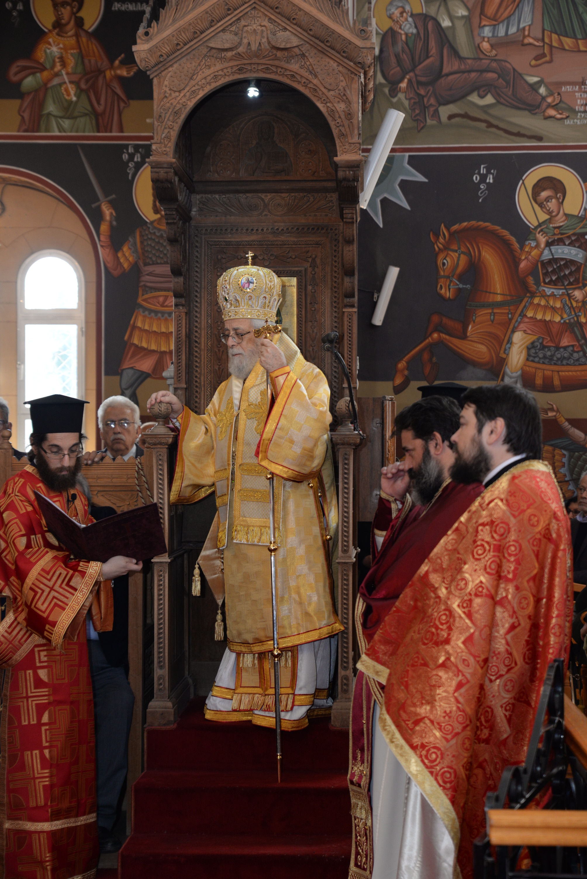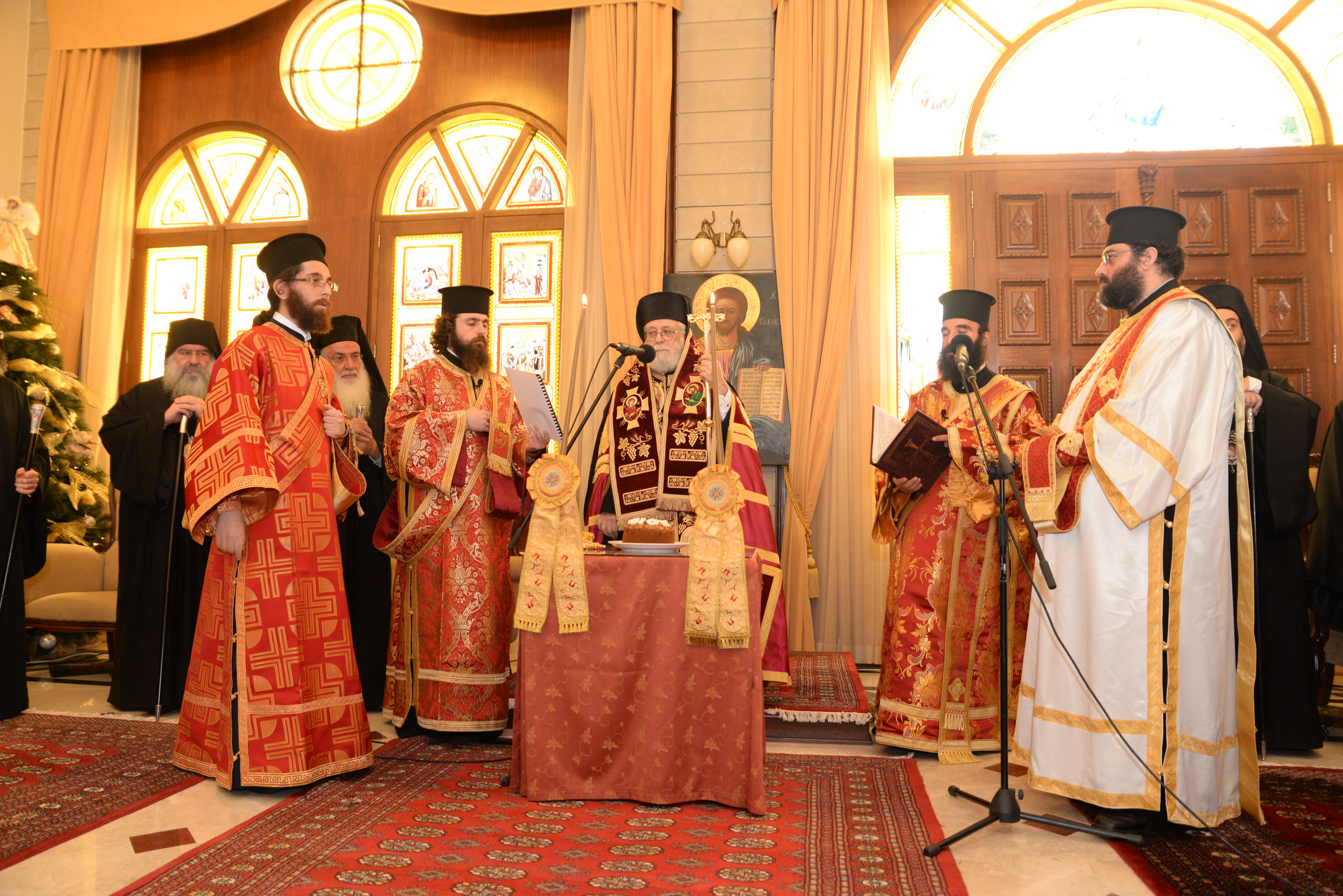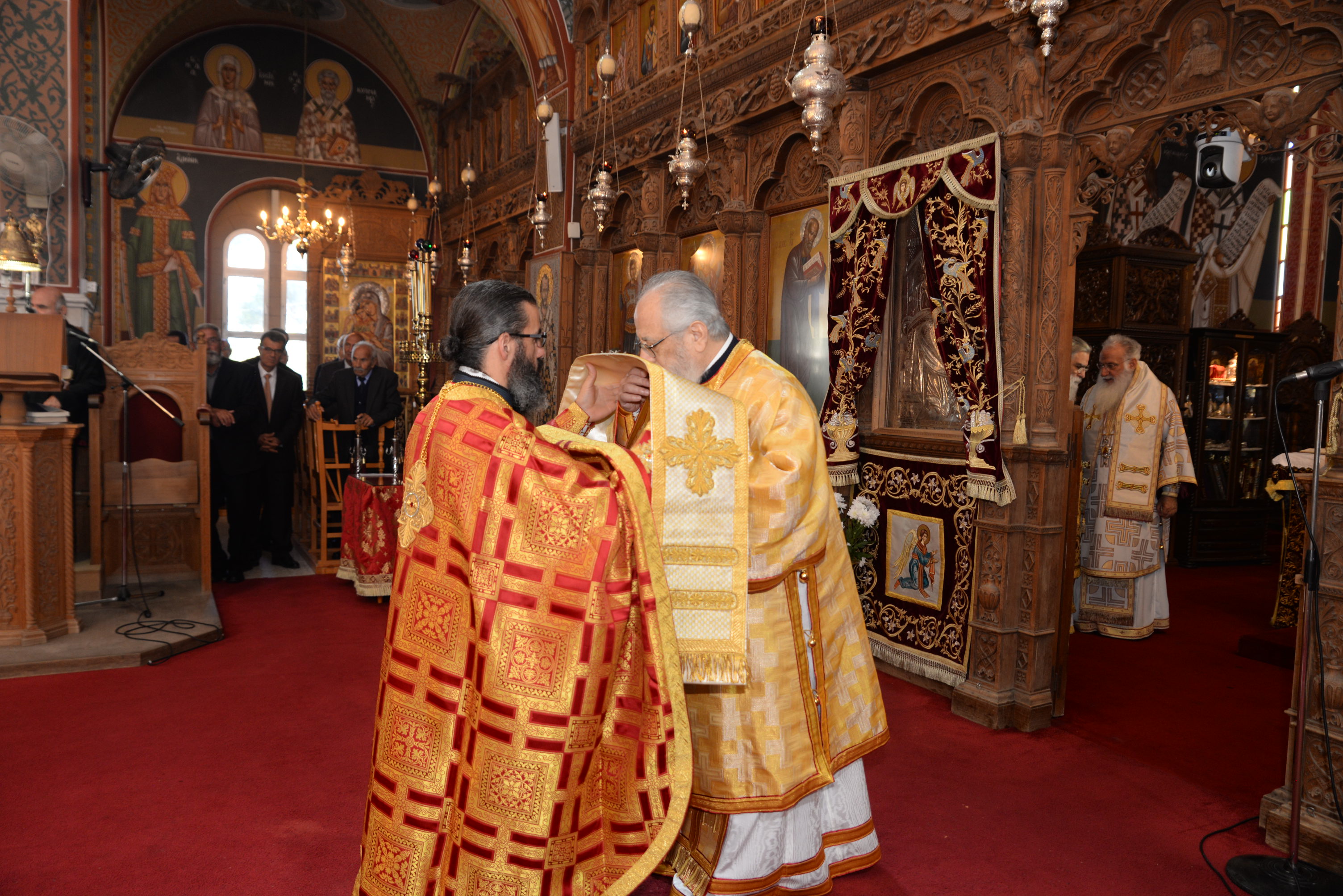 Με τον εορτάζοντα Μητροπολίτη συλλειτούργησαν οι Σεβασμιώτατοι Μητροπολίτες Ναϊρόμπι κ. Μακάριος, Βόστρων κ. Τιμόθεος, έξαρχος του Παναγίου Τάφου εν Κύπρω, Λεμεσού κ. Αθανάσιος και ο Θεοφιλέστατος Επίσκοπος Αρσινόης κ. Νεκτάριος. Στο ιερό βήμα παρέστη συμπροσευχόμενος ο Πανιερώτατος Μητροπολίτης Κυρηνείας κ. Χρυσόστομος. Στη Θεία Λειτουργία έλαβαν μέρος επίσης οι πανοσιολογιώτατοι Αρχιμανδρίτες Ιερώνυμος Πυλιώτης, Αυγουστίνος Κκαράς, πρωτοσύγκελλος της Ιεράς Μητροπόλεως, Πρωτ. Χρίστος Βούργιας, Αρχιερατικός Επίτροπος, ιερείς και διάκονοι της Ιεράς Μητροπόλεως.