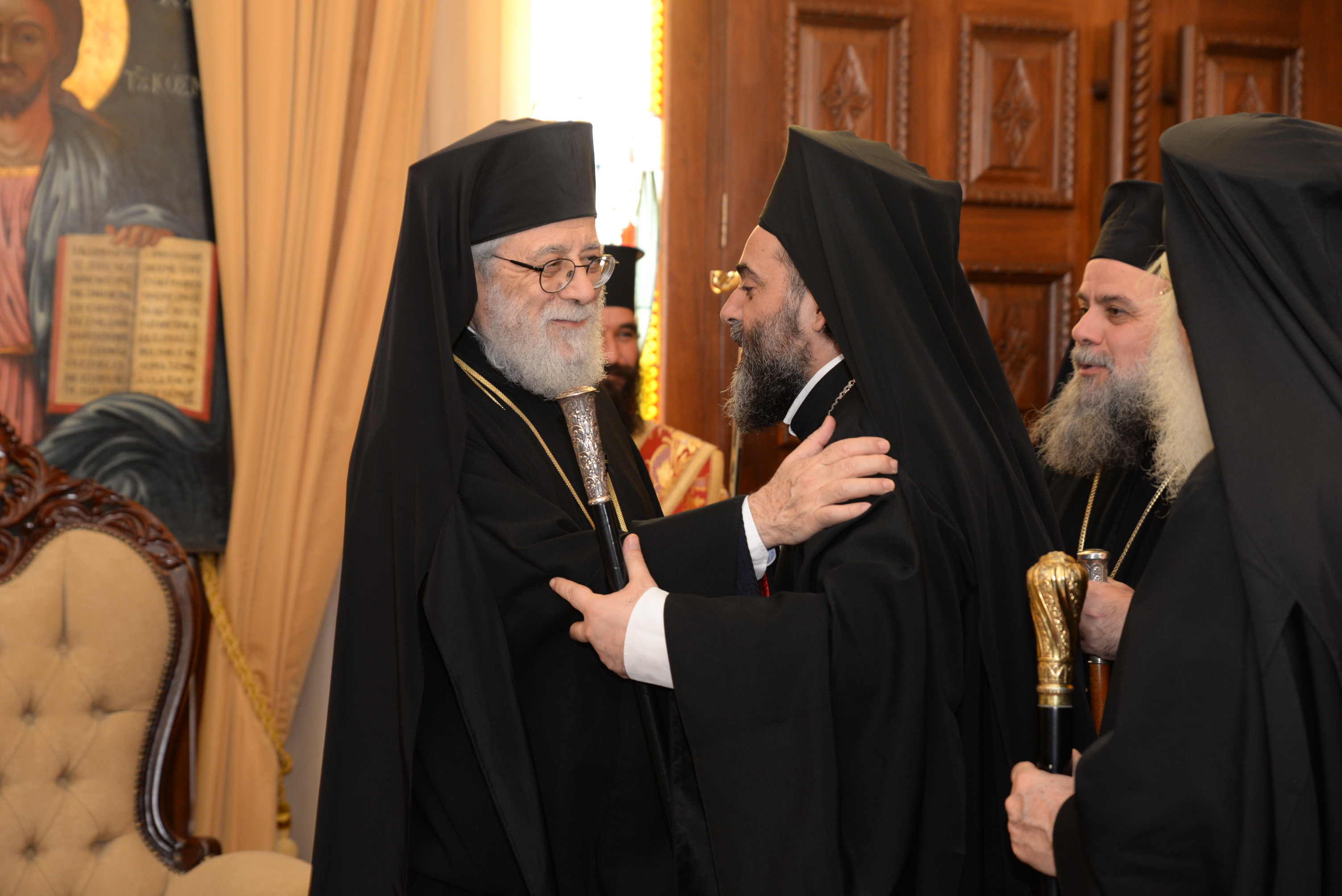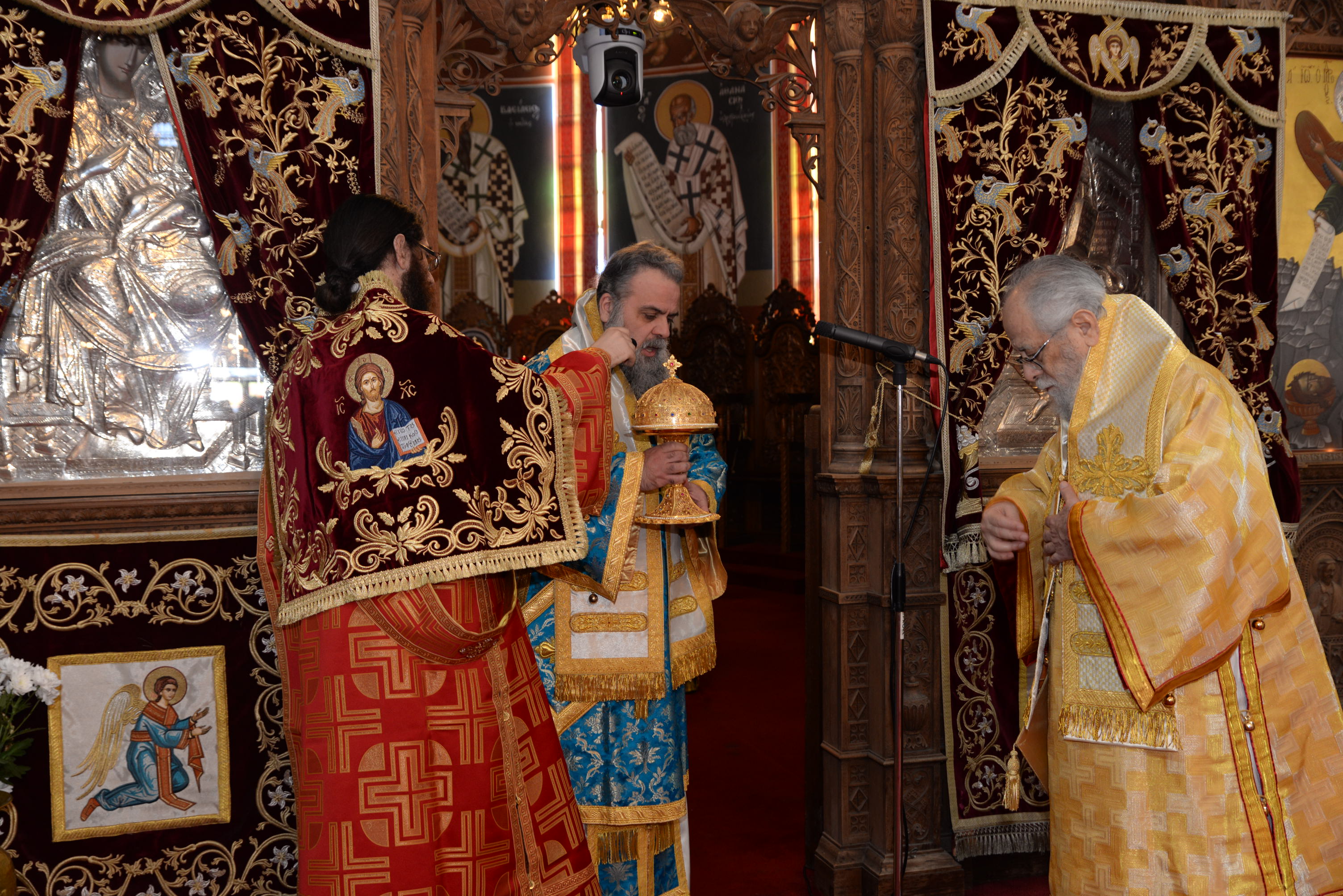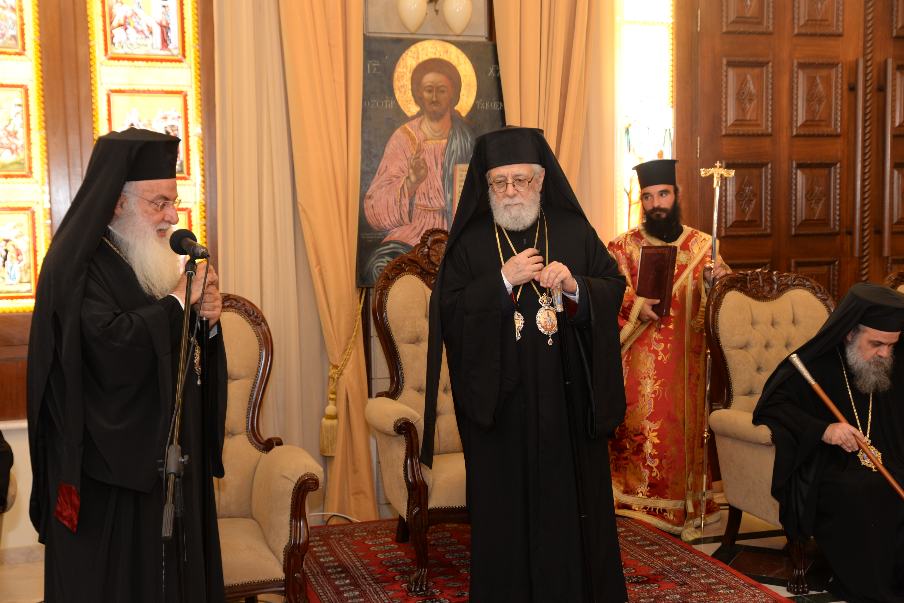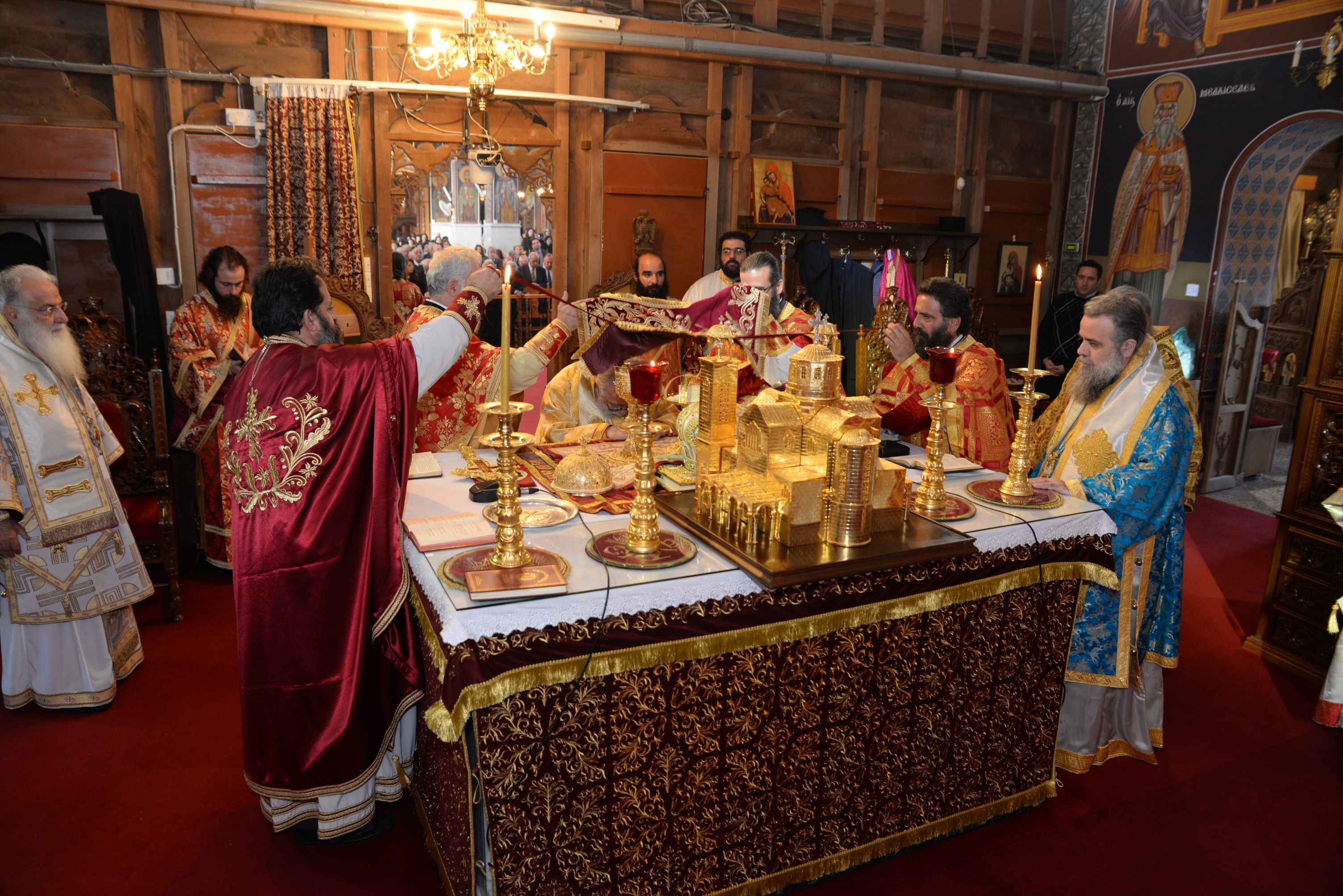Με τον εορτάζοντα Μητροπολίτη συλλειτούργησαν οι Σεβασμιώτατοι Μητροπολίτες Ναϊρόμπι κ. Μακάριος, Βόστρων κ. Τιμόθεος, έξαρχος του Παναγίου Τάφου εν Κύπρω, Λεμεσού κ. Αθανάσιος και ο Θεοφιλέστατος Επίσκοπος Αρσινόης κ. Νεκτάριος. Στο ιερό βήμα παρέστη συμπροσευχόμενος ο Πανιερώτατος Μητροπολίτης Κυρηνείας κ. Χρυσόστομος. Στη Θεία Λειτουργία έλαβαν μέρος επίσης οι πανοσιολογιώτατοι Αρχιμανδρίτες Ιερώνυμος Πυλιώτης, Αυγουστίνος Κκαράς, πρωτοσύγκελλος της Ιεράς Μητροπόλεως, Πρωτ. Χρίστος Βούργιας, Αρχιερατικός Επίτροπος, ιερείς και διάκονοι της Ιεράς Μητροπόλεως.
