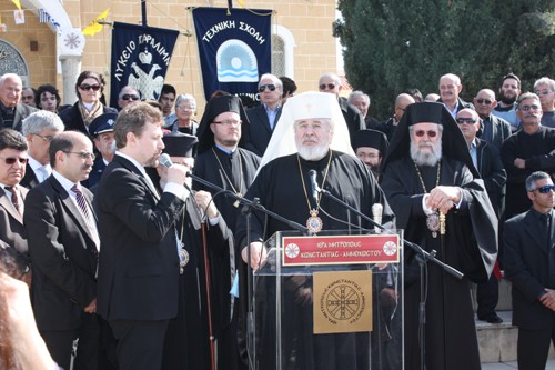 «Είμαστε βέβαιοι», τόνισε ο κ. Ευαγγέλου, «ότι φεύγοντας από την Κύπρο, από τούτη τη μικρή πατρίδα, από αυτό το μικρό κομμάτι της απεραντοσύνης, θα ενώσετε τη φωνή σας με τη δική μας φωνή, για να βασιλεύσουν και στη δική μας πατρίδα, όπως και στη δική σας, το αναφαίρετο δικαίωμα της ελευθερίας και της δικαιοσύνης».