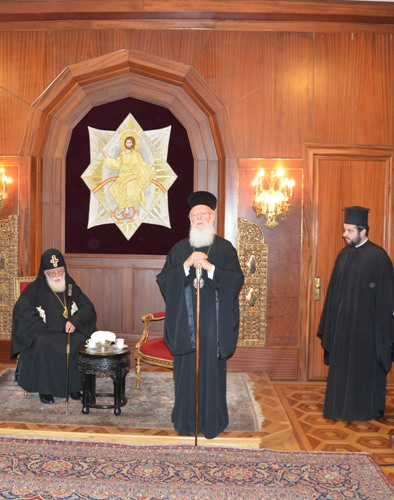 Ο Παναγιώτατος Οικουμενικός Πατριάρχης κ.κ. Βαρθολομαίος στην προσφώνησή του κατά την επίσκεψη του Μακαριωτάτου Πατριάρχου Γεωργίας κ.κ. Ηλία και των λοιπών αρχιερέων, κληρικών και λαϊκών ευχαρίστησε για τις εκδηλώσεις αγάπης και τις ευχές όλων προς το πρόσωπό του με την ευκαιρία της συμπλήρωσης είκοσι χρόνων από την ανύψωσή του στο Θρόνο του Οικουμενικού Πατριαρχείου. Ο Παναγιώτατος έκανε ειδική αναφορά στους αρχιερείς από την Κύπρο, τον Πανιερώτατο Μητροπολίτη Κωνσταντίας κ. Βασίλειο και στον Πανιερώτατο Μητροπολίτη Ταμασού κ. Ησαΐα και τους ευχαρίστησε για τις ευχές τους αλλά και για την αγάπη και τον σεβασμό τους προς το Οικουμενικό Πατριαρχείο.